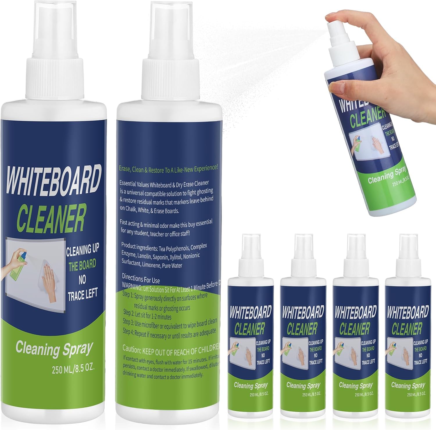 - Abundance in Quantity: this whiteboard spray cleaner kit stands out due to the bulk-like offering, the users get 6 bottles of 8.5oz white board cleaning spray which ensures that you're never short when needing to clean your whiteboard or other surfaces
