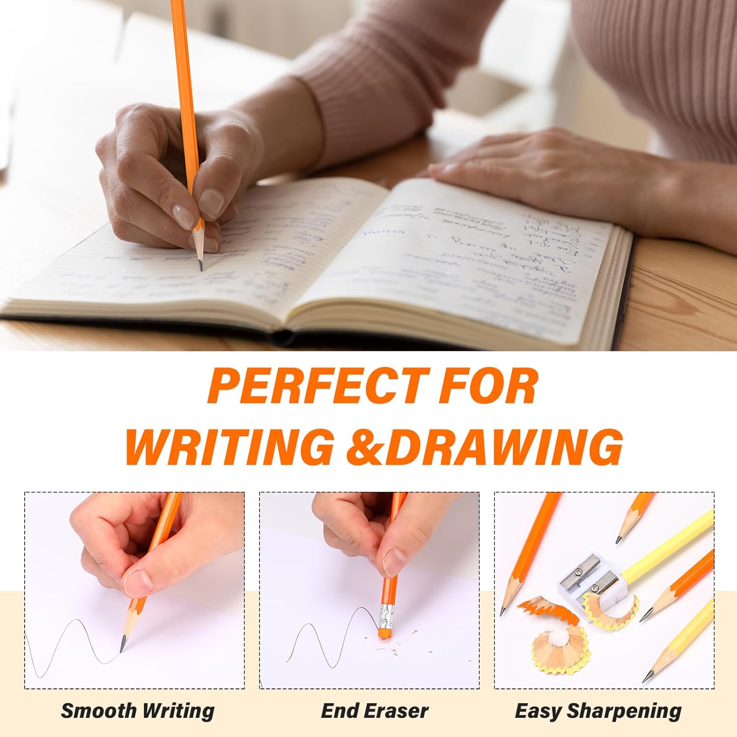 TecUnite 120 Pcs #2 HB Pencils with Eraser No 2 Unsharpened Wooden Hexagonal Pencils for Adults Gifts for School Exam art Learning Office Sketching(Orange Series)