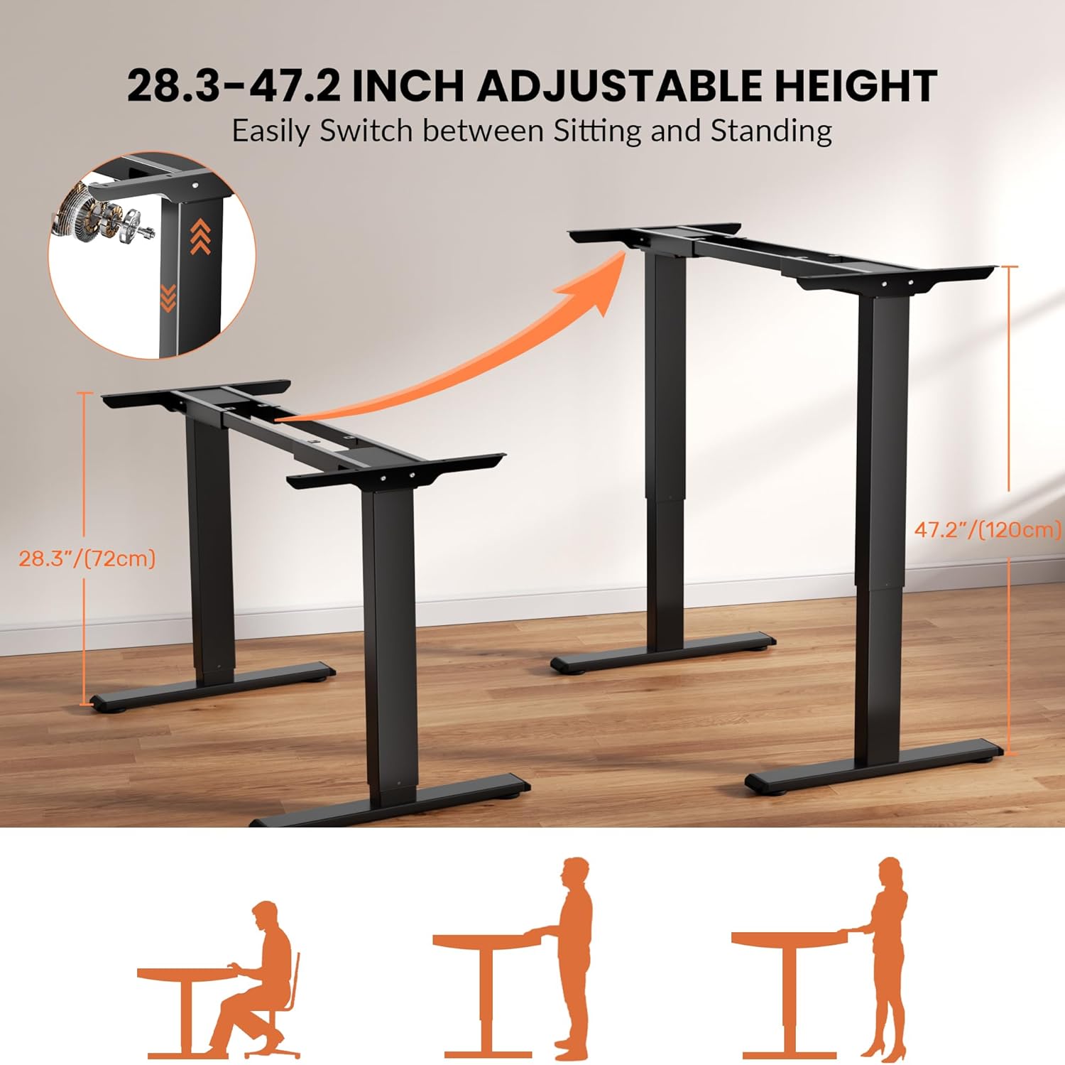 - Ergonomic Height Adjustment: Elevate your workspace comfort and productivity with our electric dual motor standing desk frame, offering adjustable heights from 28.3" to 47.2". Experience seamless transitions between sitting and standing positions.