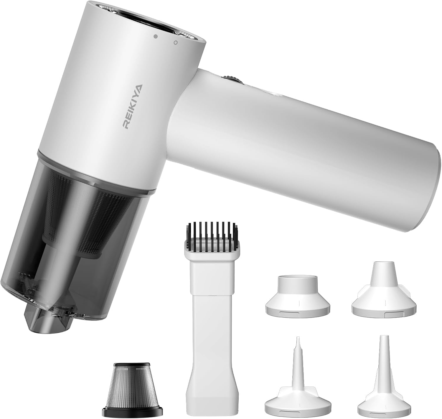 REIKIYA 14KPA High Power Mini Car Vacuum Computer Keyboard Cleaner and Blower Cordless Portable Handheld Vacuum & Compressed Air Duster 2in1 with Green LED Light& Multi-Nozzles for Car Home Office
