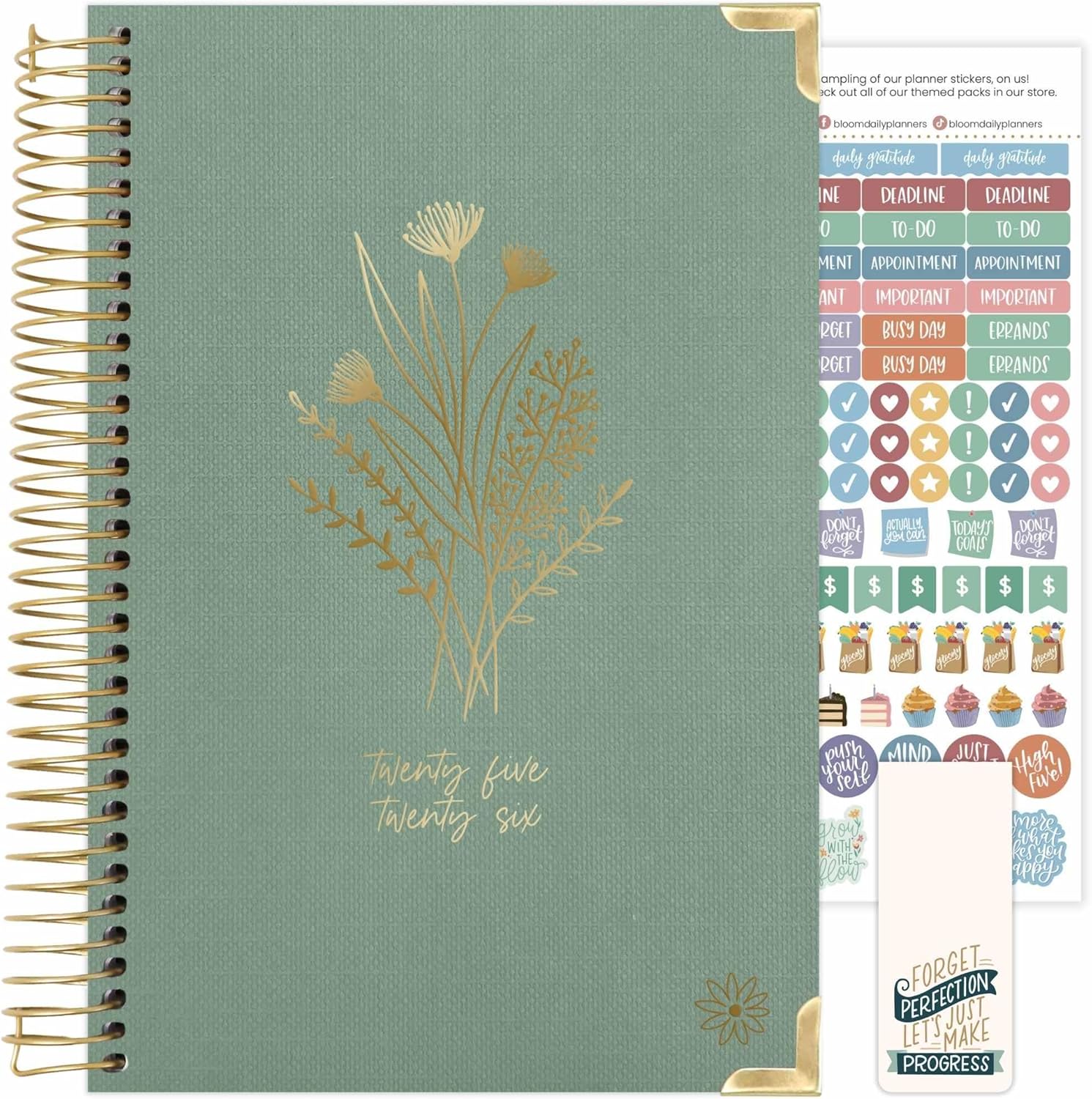 bloom daily planners HARDCOVER 2025-2026 Academic Year Planner (July 2025 - July 2026) - A5 Task Goal Organizer - Aesthetic Monthly & Weekly Inspirational Agenda Book - 5.5" x 8.25" - Green Linen
