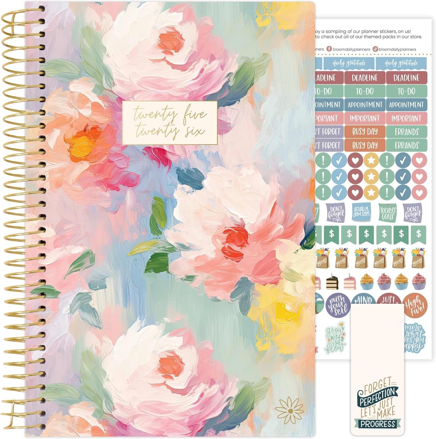 bloom daily planners 2025-2026 Academic Year Daily Planner (July 2025 - July 2026) - A5 Weekly & Monthly Calendar Agenda Organizer Book with Stickers - 5.5" x 8.25" - Painted Peonies