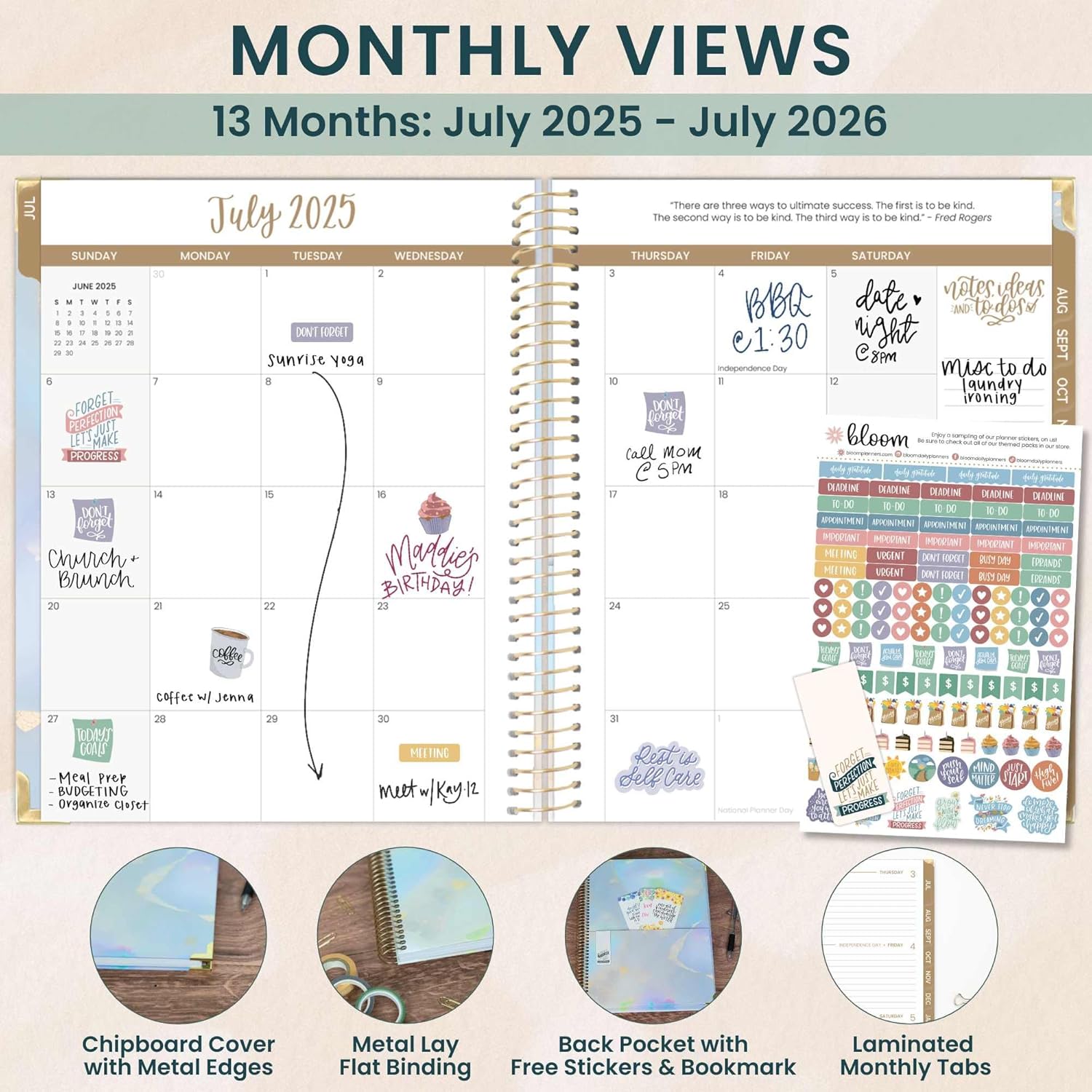 bloom daily planners HARDCOVER 2025-2026 (8.5" x 11") Academic Year Day Planner (July 2025 - July 2026) - Task Goal Organizer - Monthly & Weekly Inspirational Agenda Book - Iridescent Opal