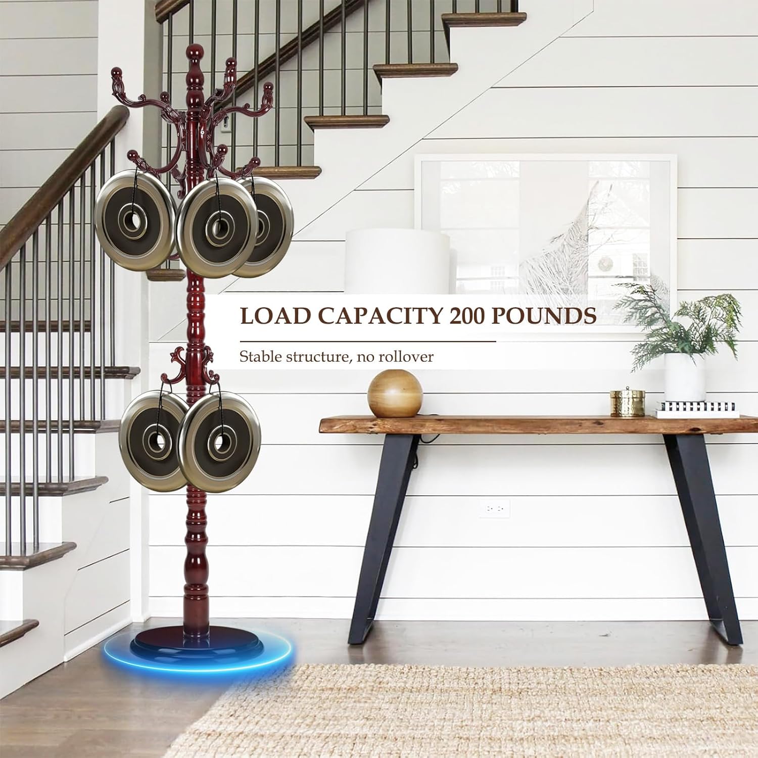 - 【A Stable Tree】 What good is a coat rack that falls over the moment you put a coat on the hook? Our coat tree made with 3.14" bold, solid wood pole and 13.4" diameter heavy-duty disc base, so you can tidy your room with confidence.