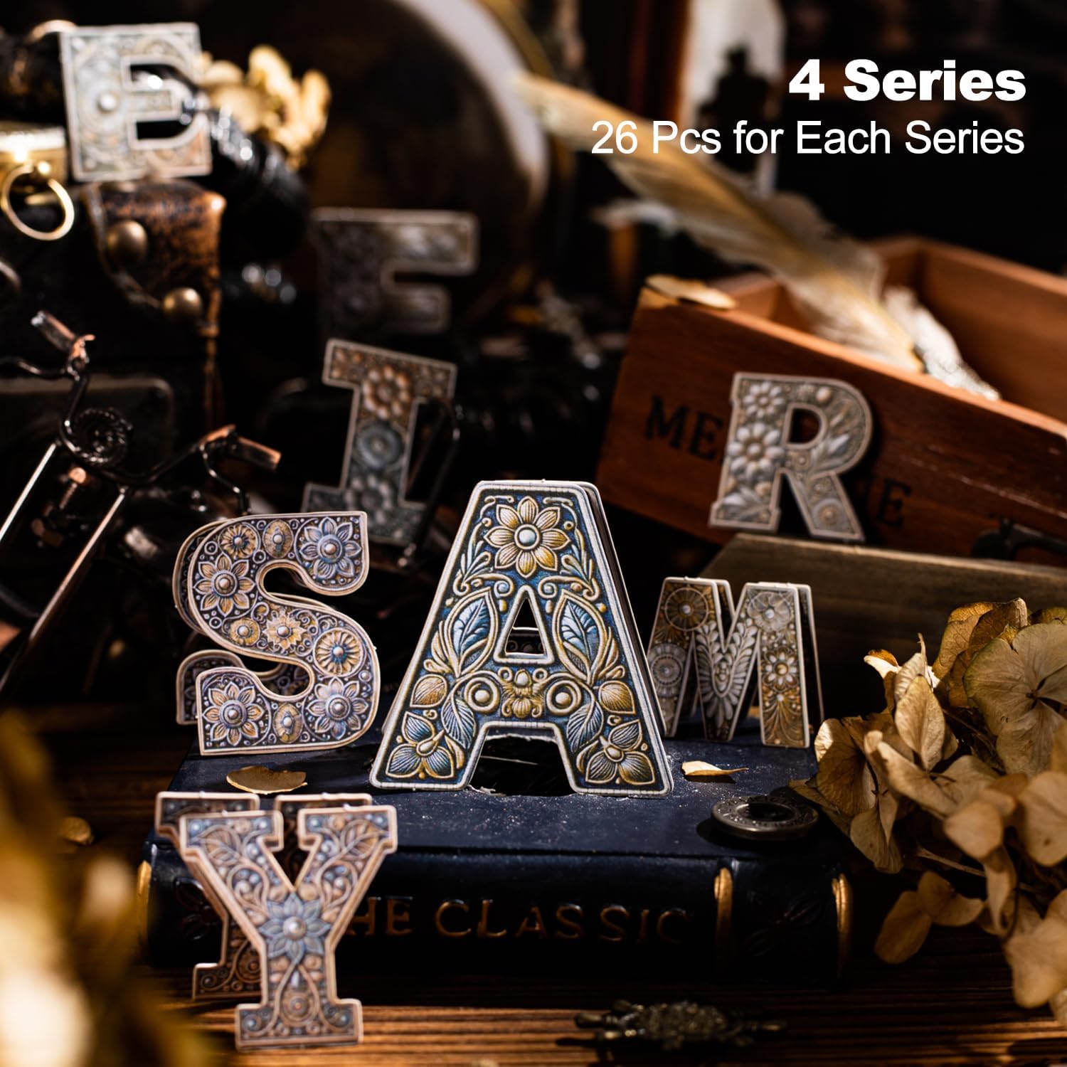 - Four Unique Vintage Alphabet Styles: Enhance your creative projects with a set of 104 vintage letter stickers, available in four distinct styles. Each set includes all 26 alphabet letters, allowing for endless customization in scrapbooks, journals, and other DIY crafts