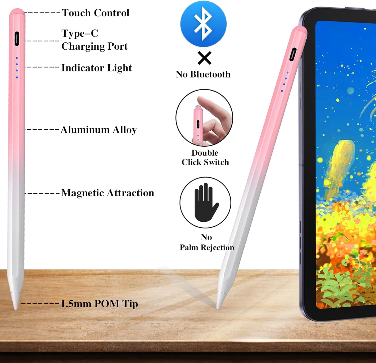 - [Touch Switch & Energy Efficient]-The active stylus pen for ipad no need for drivers or bluetooth setting.Just double tap the pen cap and then start to write or draw.The iphone pencil stylus can also be used as a useful gift for your family/friends around you who love to create.Our fine point stylus is equipped with smart energy-saving features, automatically switching to "sleep mode" of inactivity to conserve power and avoid unnecessary battery consumption