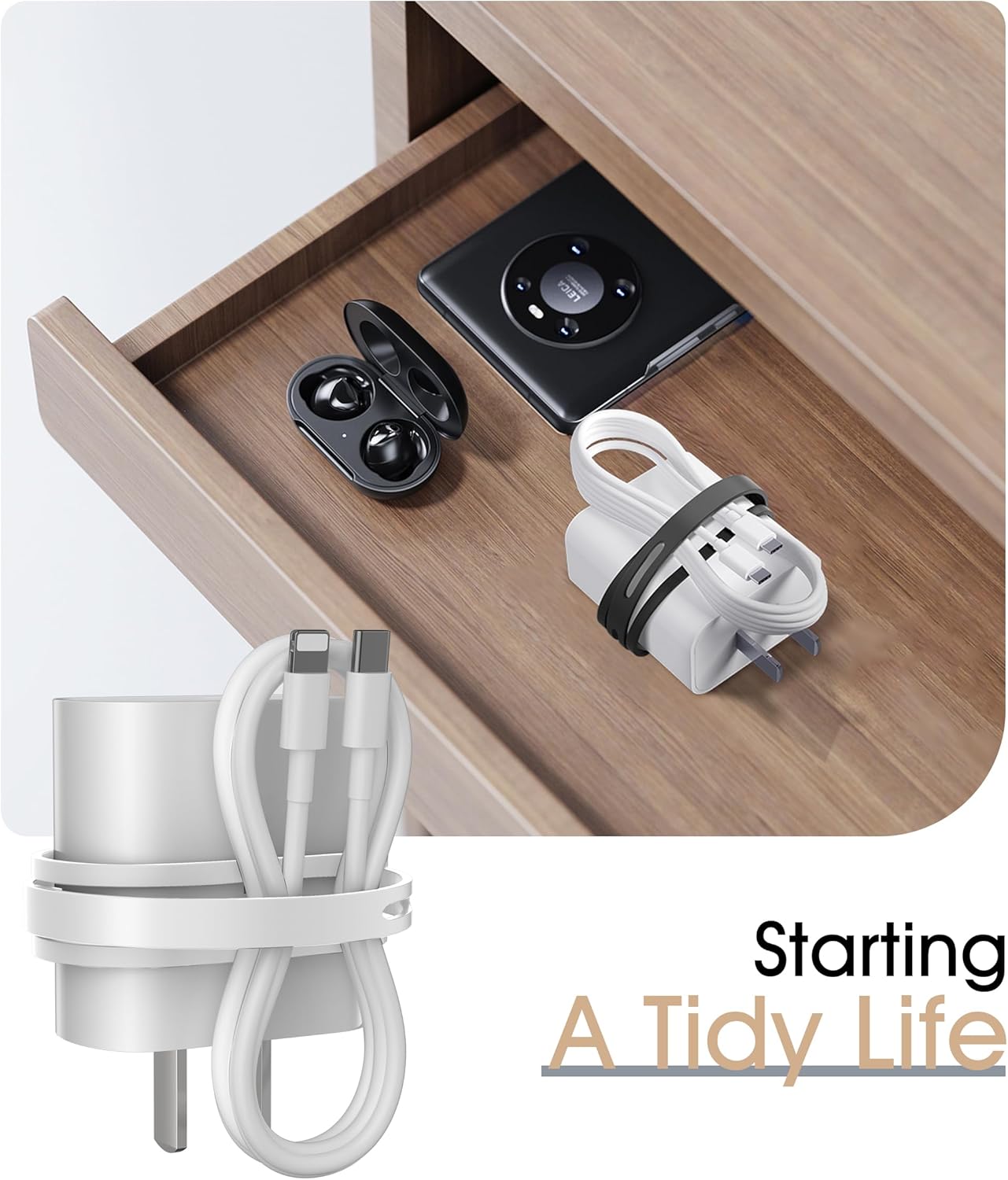 - 【The Latest Anti-lost Design】Are you still worried about messy cables? Ever held your charger and couldn't find the corresponding USB cable? This cable organizer can organize USB cables and matching chargers together, or it can organize two different types of cables at the same time. Fixing it on the cable can avoid loss and is convenient for use at any time