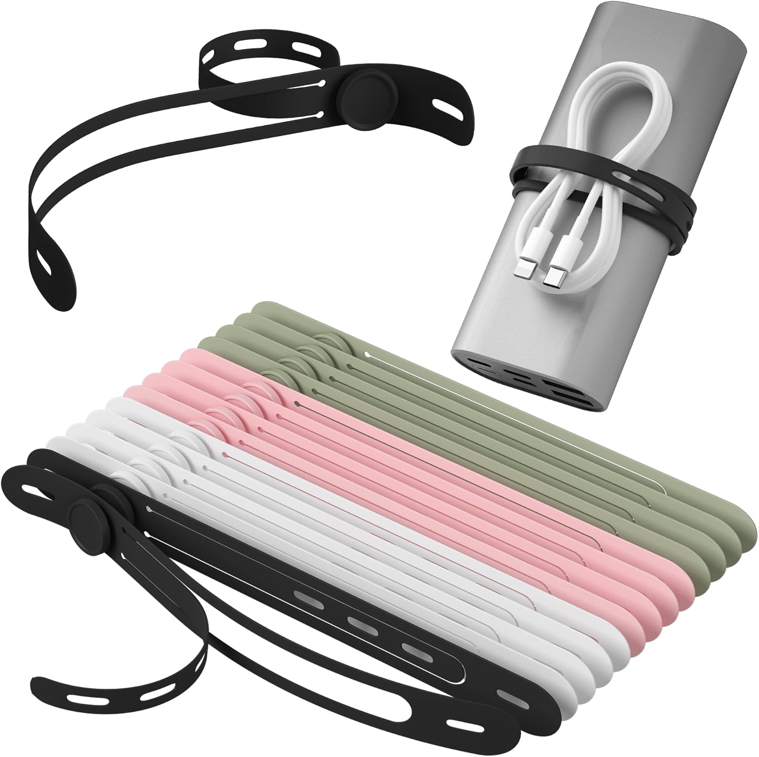 Nearockle Latest Double-Sided Silicone Cable Ties, 16Pcs Reusable Cord Organizer for Bundling Phone Charger and USB Cable, Multifunctional Organizer for Travel Home (Multi)