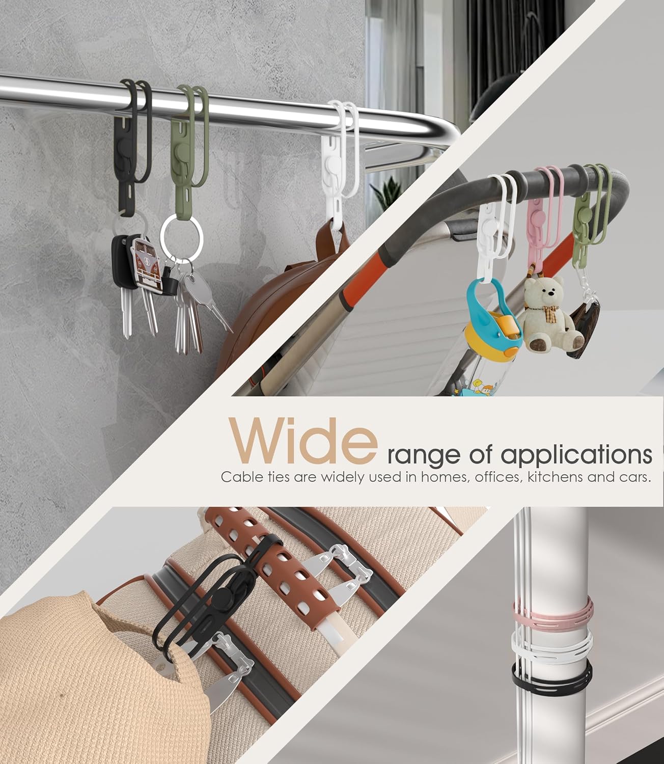 - 【Multifunctional Cable Ties】The design of this double-sided silicone tie with a wide buckle makes the binding more secure. It can not only be used for cable management, but also for storing keys, scissors and other convenient hanging objects at home, and for connecting hats and coats to backpacks when traveling, freeing your hands
