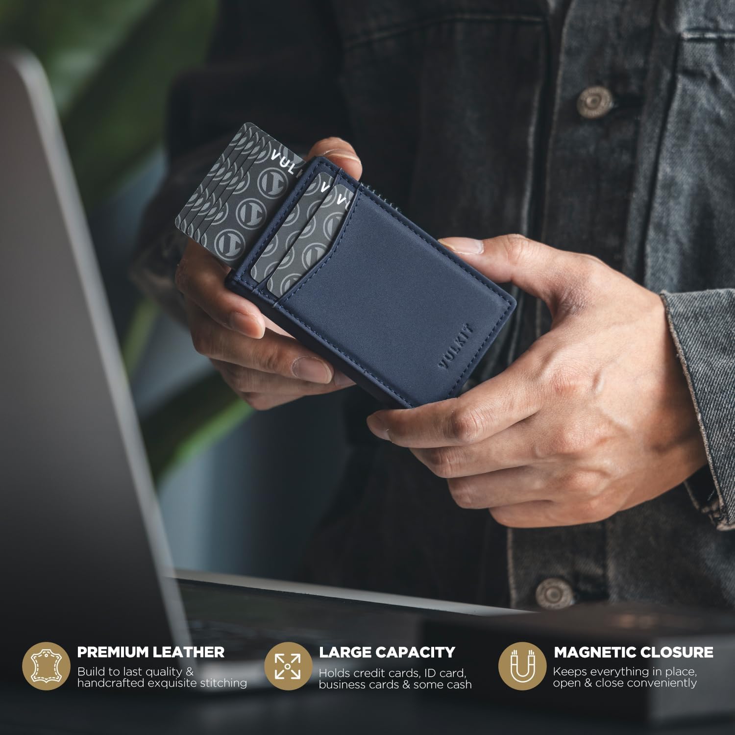 - Large Capacity, Minimalist Design: Design to fit your everyday essentials. It fits easily into your jeans pocket or a lightweight backpack. You can insert 8 to 10 cards (including one visible ID slot) and a small amount of bills as needed.