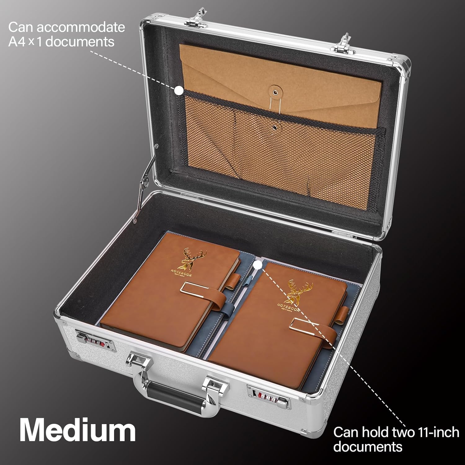 - LARGE SIZE STORAGE - Whether it's office organization or personal belongings storage, our 16-Inch Size silver file organizers (Internal: 15.94 x 11.02 x 3.94 inches): Ideal for storing Letter-size documents (8.5 x 11 inches) for storing passports, electronic devices and other important valuables