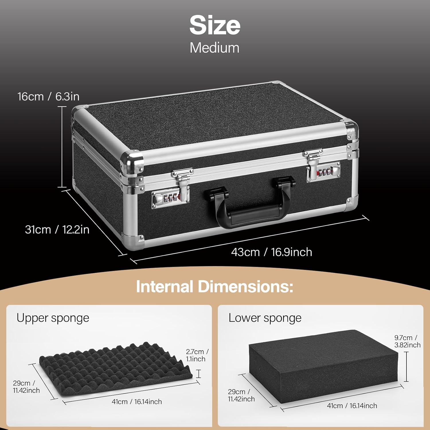 - 【SPACIOUS SECURE STORAGE BOX】Measuring 16.9" x 12.2" x 6.3", this large locking storage case offers ample room for storing personal items like passports, pills, electronics, and cash. Perfect as a medicine lock box, travel safe, or locking document case