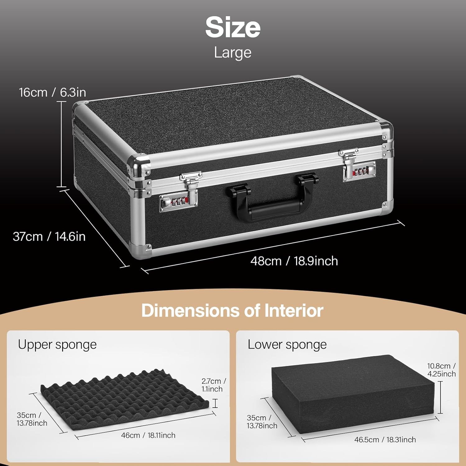 - 【SPACIOUS SECURE STORAGE BOX】Measuring 18.9" x 14.6" x 6.3", this large locking storage case offers ample room for storing personal items like passports, pills, electronics, and cash. Perfect as a medicine lock box, travel safe, or locking document case