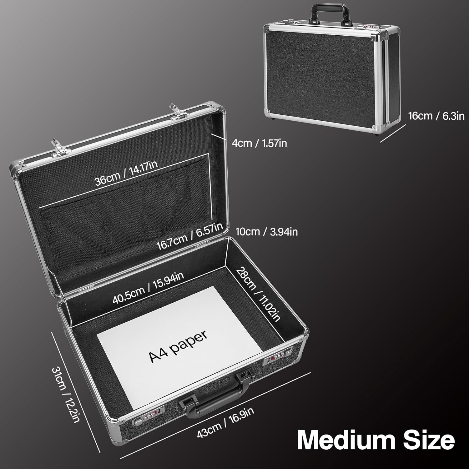 File Organizer Storage Box - 16.8 x 12.1 x 6 Inch Large, Portable Locking Storage Totes with Dual Combination Locks, Lock Boxes for Personal Items, Cash, Briefcase - Black