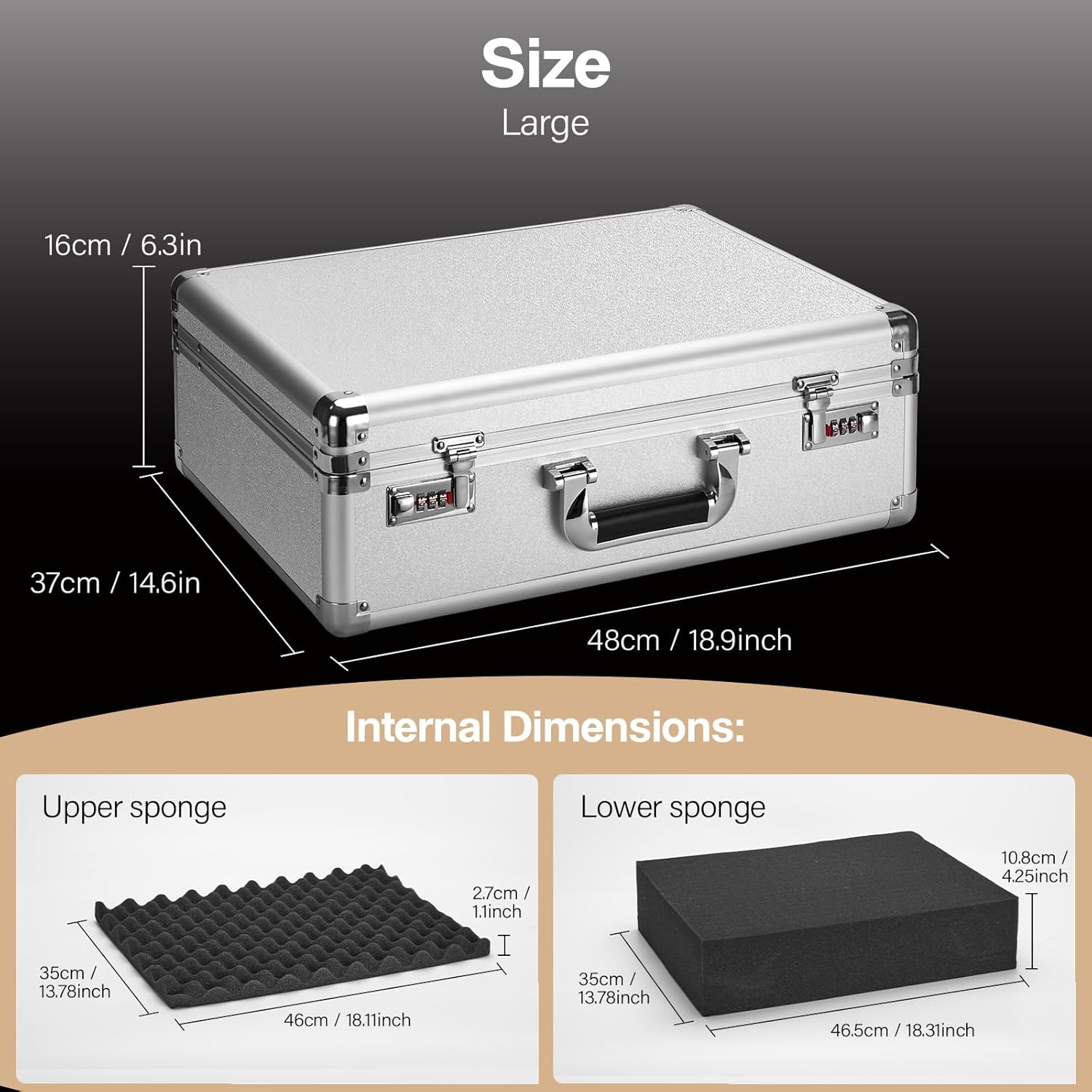 - 【SPACIOUS SECURE STORAGE BOX】Measuring 18.9" x 14.6" x 6.3", this large locking storage case offers ample room for storing personal items like passports, pills, electronics, and cash. Perfect as a medicine lock box, travel safe, or locking document case