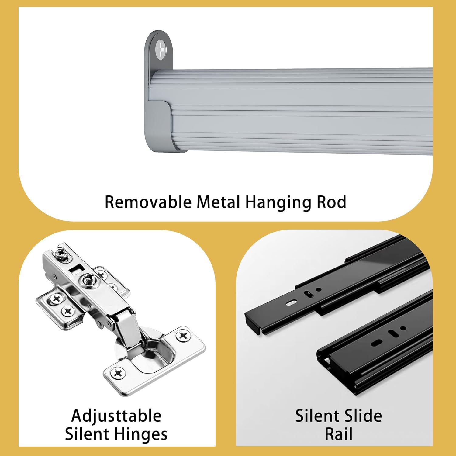 - High-Quality Material, Durable and Easy to Clean, Stays Like New for Years:The armoire with drawers is crafted from high quality engineered wood with a specially treated, wear resistant surface that offers excellent waterproof and scratch resistant properties. Whether facing daily wear and tear or occasional accidental scratches, the wardrobe with drawers can handle it effortlessly while maintaining its fresh appearance over time. Additionally, it is very easy to clean just a simple wipe is all it takes to keep it looking pristine, ensuring your home stays tidy and bright.