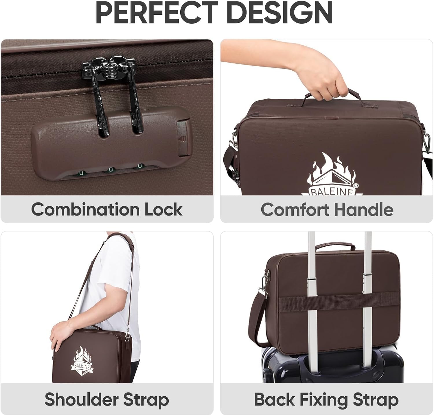 BALEINE Fireproof Document Box with Lock, Portable Fireproof Document Bag Waterproof Fire Proof File Boxes for Documents, File Organizer Box for Important Paperwork (Brown, 15''x11''x4'')