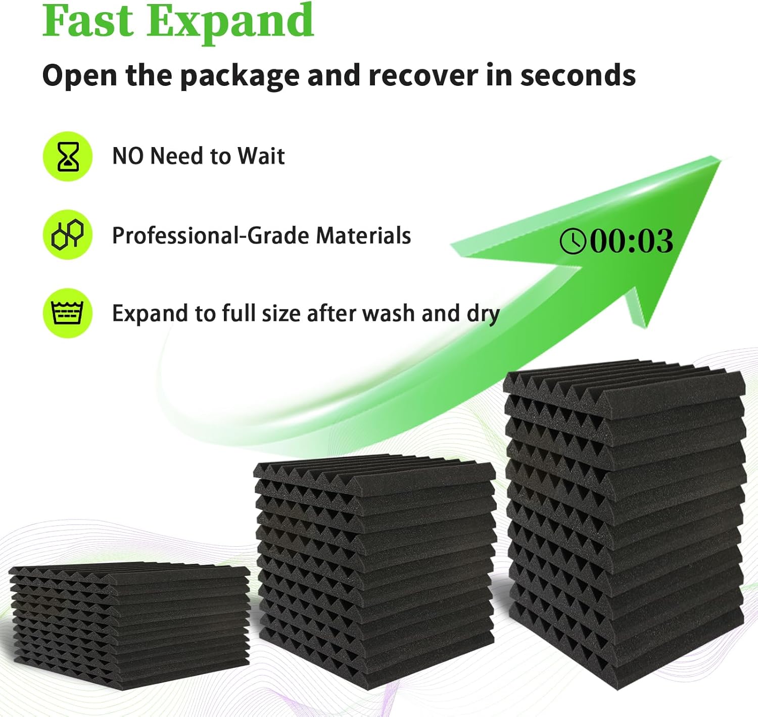 - Elevated Entertainment Experience: Acoustic foam significantly boosts sound quality by absorbing sound across various frequencies, making it perfect for enhancing environments like recording studios and theaters.