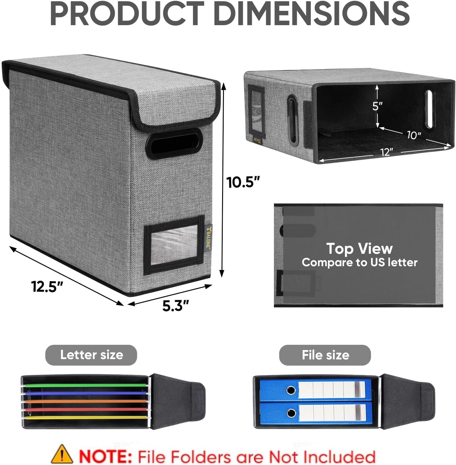 - [MULTI-PURPOSE USAGE] Measuring 5.3x12.5x10.5 inches, our file folder box is perfect for organizing files, bills, and papers in your home or office. Its versatility makes it practical for various needs