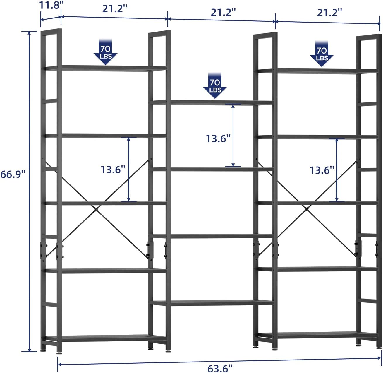 - 【Triple Column Multifunctional Bookshelf】Featuring 14 open shelves, this bookshelf provides ample space to store books, photo albums, alarm clocks, potted plants, and various decorations; It serves as both a functional storage unit and a stylish display for your beloved collections; The minimalist and elegant design complements a variety of home decor styles, making it a versatile addition to any study room, bedroom, living room, dining room, or office; Dimensions: 63.6''*11.8*66.9''(L*W*H)