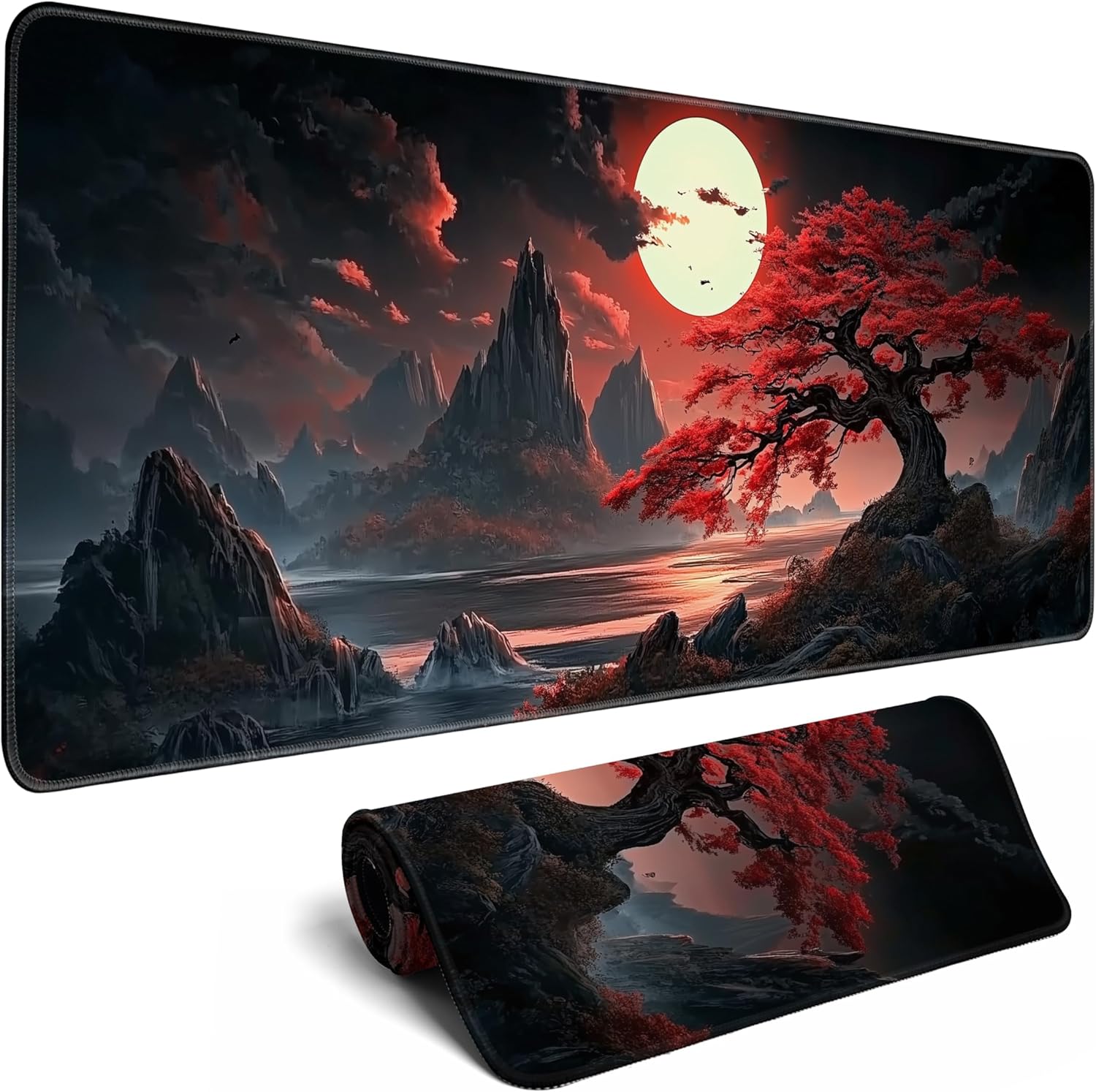 Japanese Desk Mat Riverside Full Moon Large Mouse Pad Gaming Mousepad Extended XL Keyboard Mat Computer Laptop Mouse Desktop Mat 31.5 X 11.8 Desk Decor