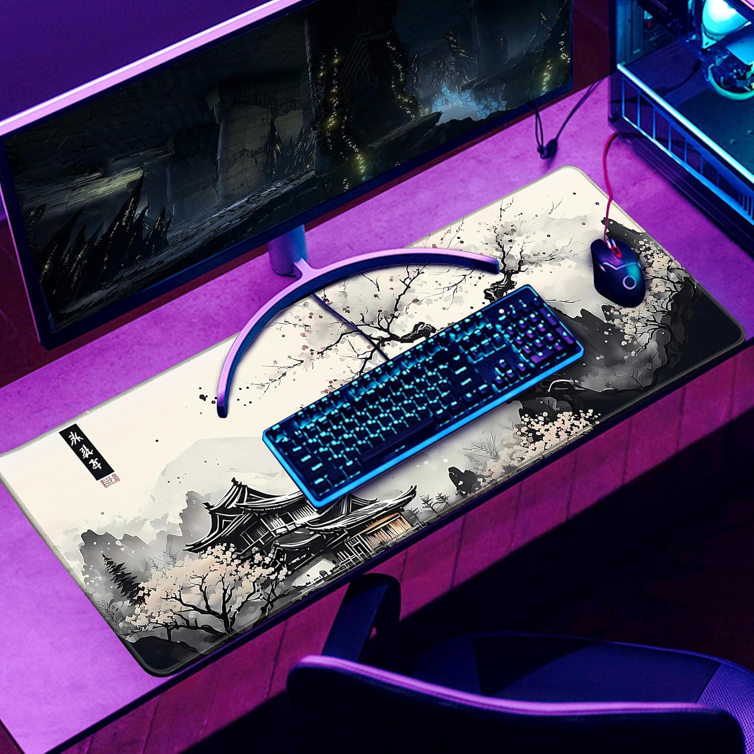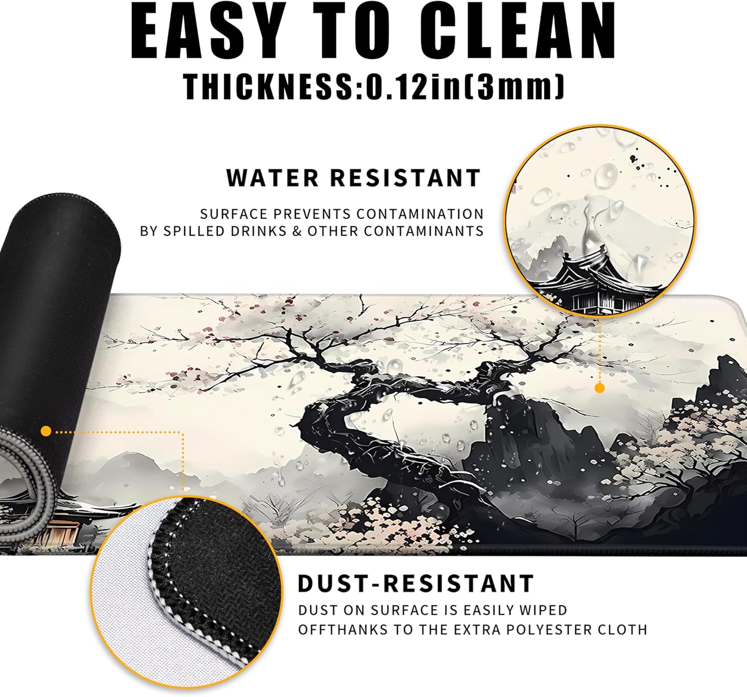 Japanese Desk Mat Cherry Blossom Large Mouse Pad Gaming Mousepad Extended XL Keyboard Mat Computer Laptop Mouse Desktop Mat 31.5 X 11.8 Desk Decor