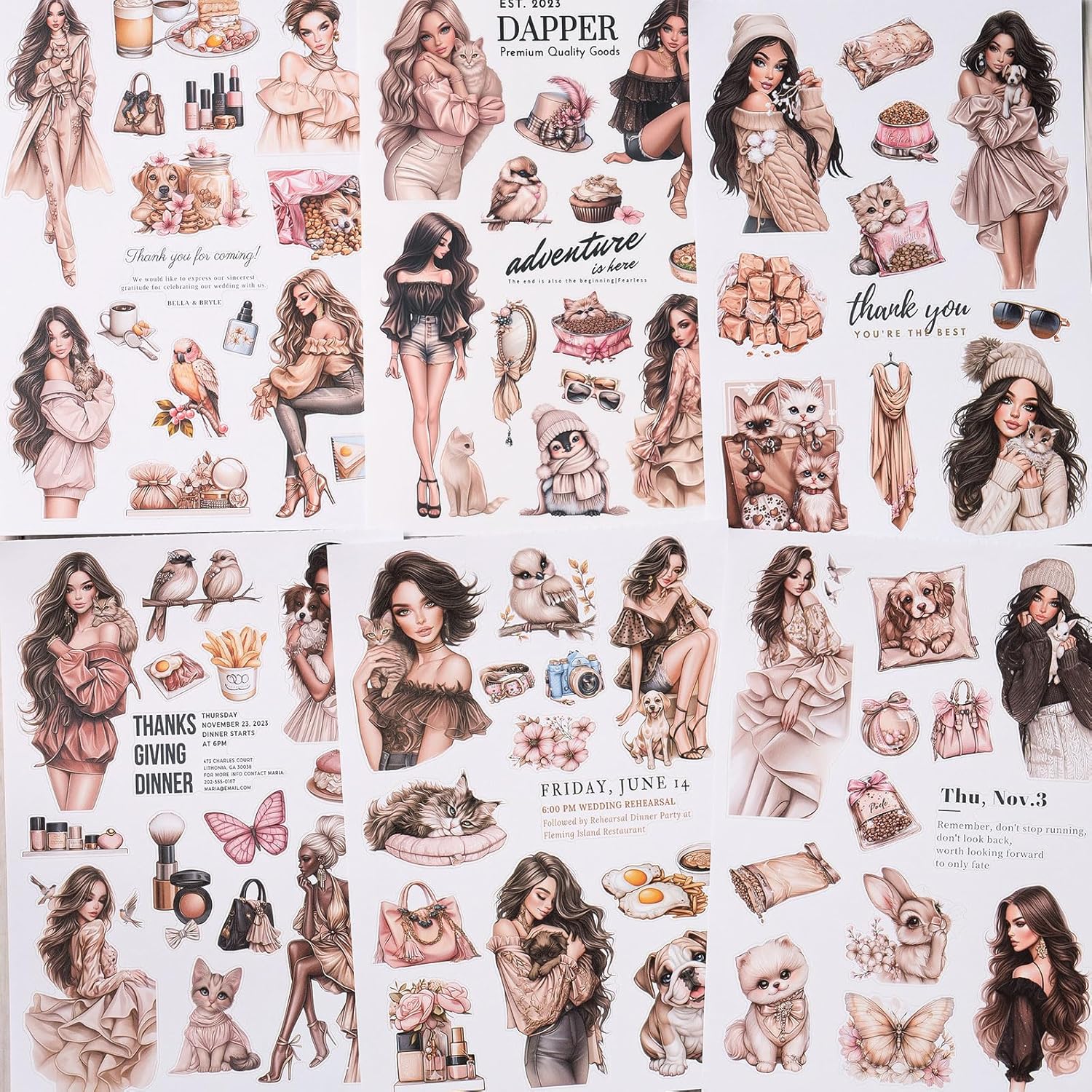 YagCu Scrapbook Sticker Book, Pets Dogs Cats Journaling Stickers, Animal Junk Journal Supplies, Pre-Cut Aesthetic Scrapbooking Stickers for Adults, Decorative Ephemera Bullet Planner DIY Arts Craft