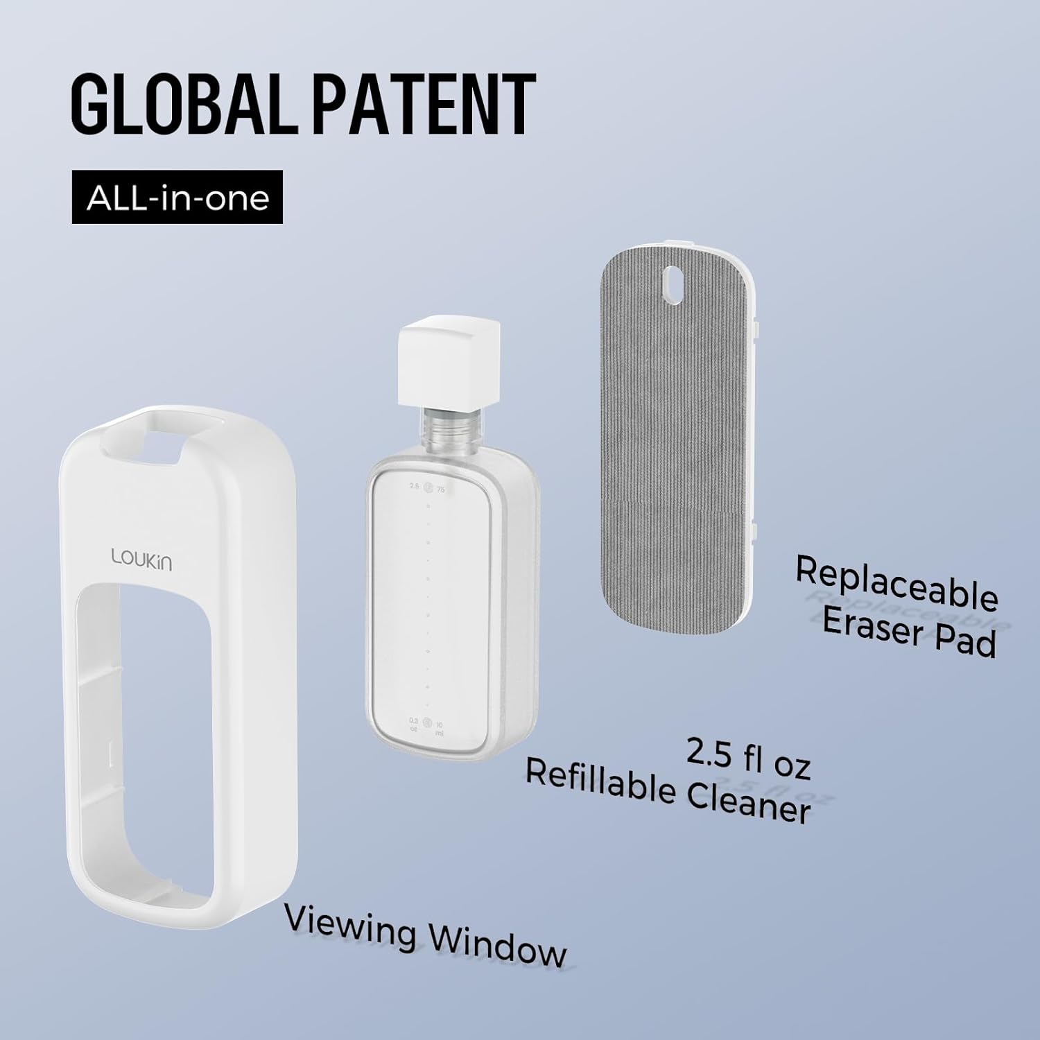 - Innovative All-In-One Design: Combines dry eraser and whiteboard cleaner in one. Unique design with global patent. Clean surfaces quickly while saving space & time