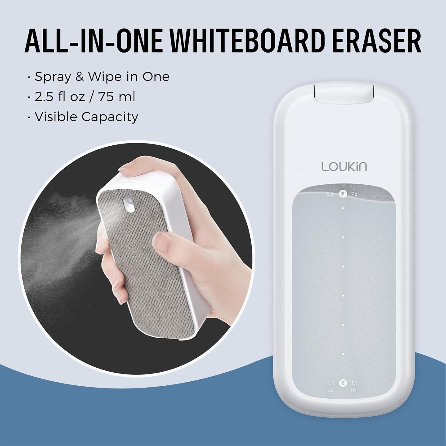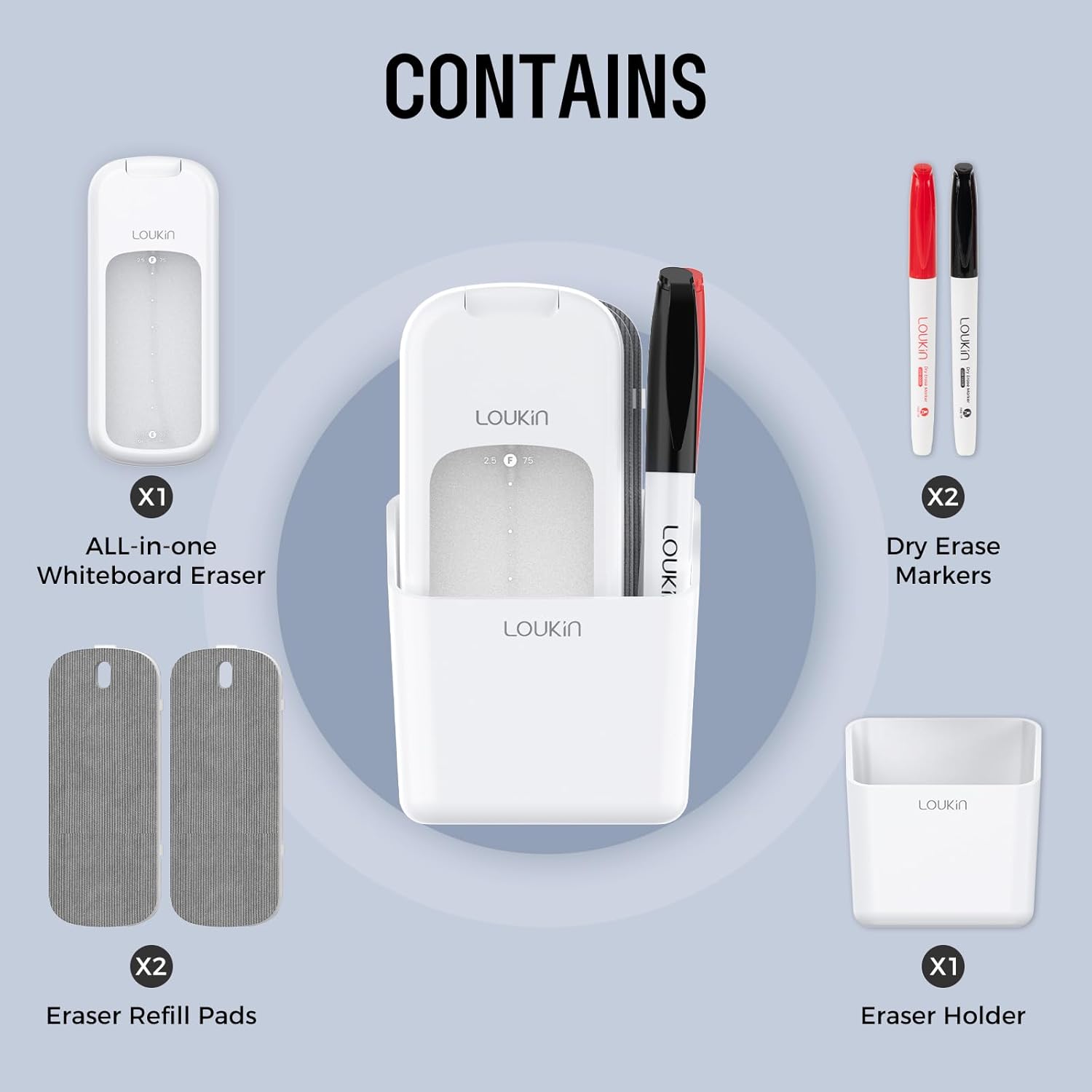 loukin Inventive All-in-One Dry Erase Eraser, Novel Replaceable Whiteboard Eraser with Built-in Cleaner, Unique Glass Board Erasers, Includes 2 Refill Pads, 1 Magnetic Holder, 2 Markers
