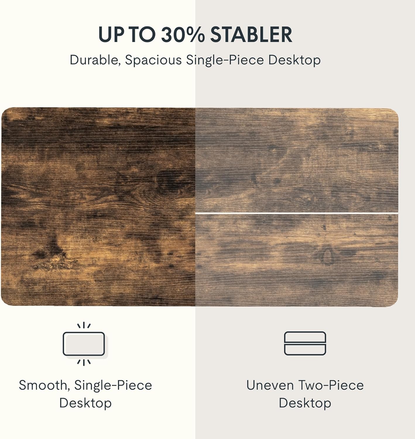 - AMPLE WHOLE-PIECE DESKTOP: With its whole-piece 1” eco-friendly desktop, this standing desk provides plenty of room for your computer setup, documents, and accessories, creating a well-organized and productive work environment. Due to hand measurements, desktop dimensions may vary slightly by 0 to 1”.