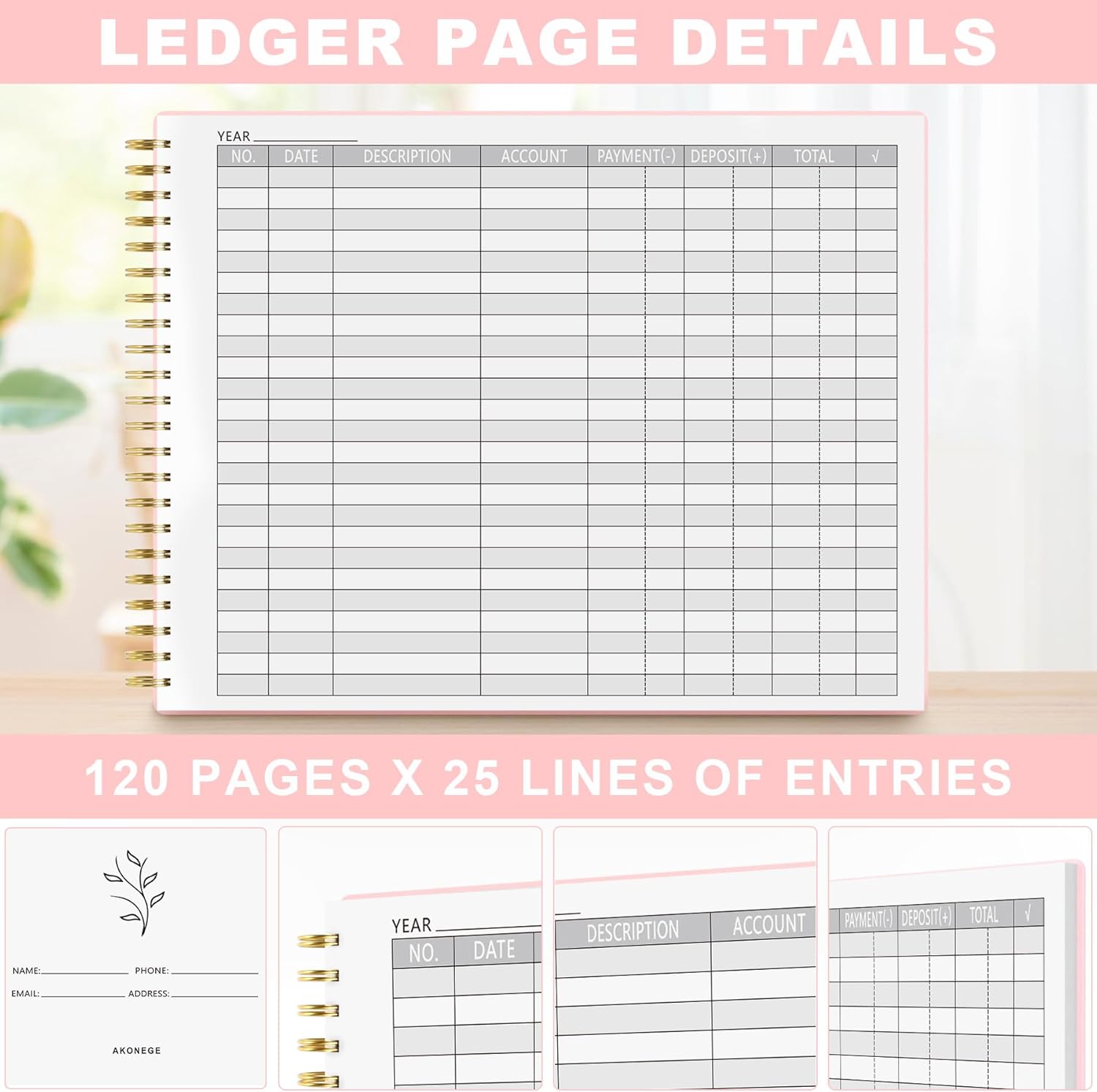 - With its clear and concise format, the AKONEGE accounting ledger book is easy to use, even for those with limited experience in bookkeeping or accounting; As a gift for Birthday, Easter, Valentine's Day, Halloween, Thanksgiving, Christmas, Back to school and New Year's Day