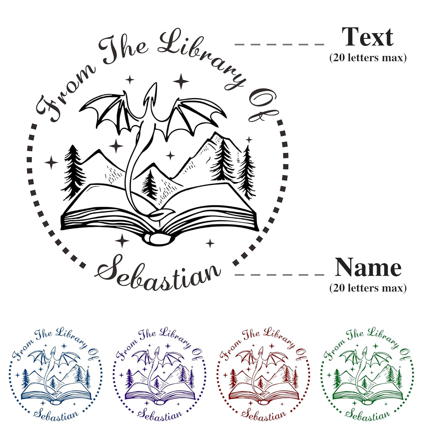 Custom Book Embosser Personalized Dragon Stamp with Your Name or Design | from the Library of | Ex Libris | Personalized Book Lover Gifts for Women | Daughter | Teacher | Wedding (Dragon Theme - 01)