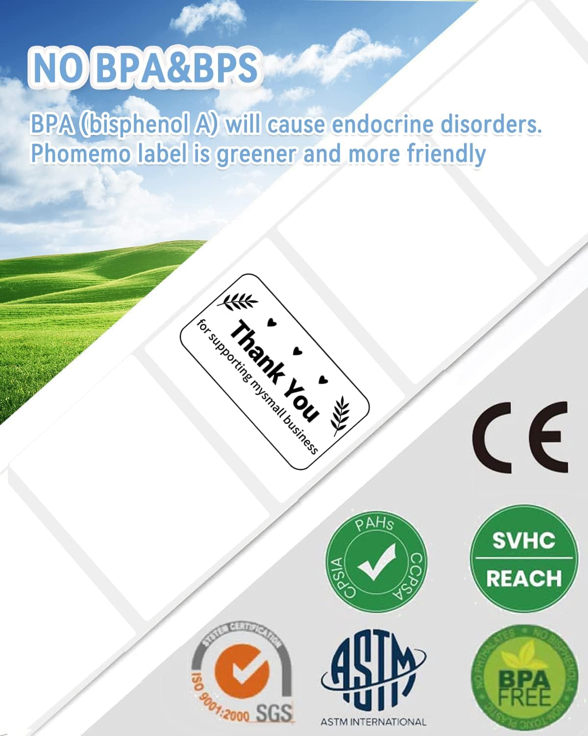 - 【 100% Compatible 】- Phomemo thermal labels compatible with MUNBYN, Nelko, JADENS, ASPRINK, ROLLO, OMEZIZY, ITARI, IDRPT, POLONO, JIOSE, K COMER, LABELRANGE, OFFNOVA, PHOMEMO, Dymo, Brother, NEFLACA,BEEPRT, NefLaca and other direct thermal printers.