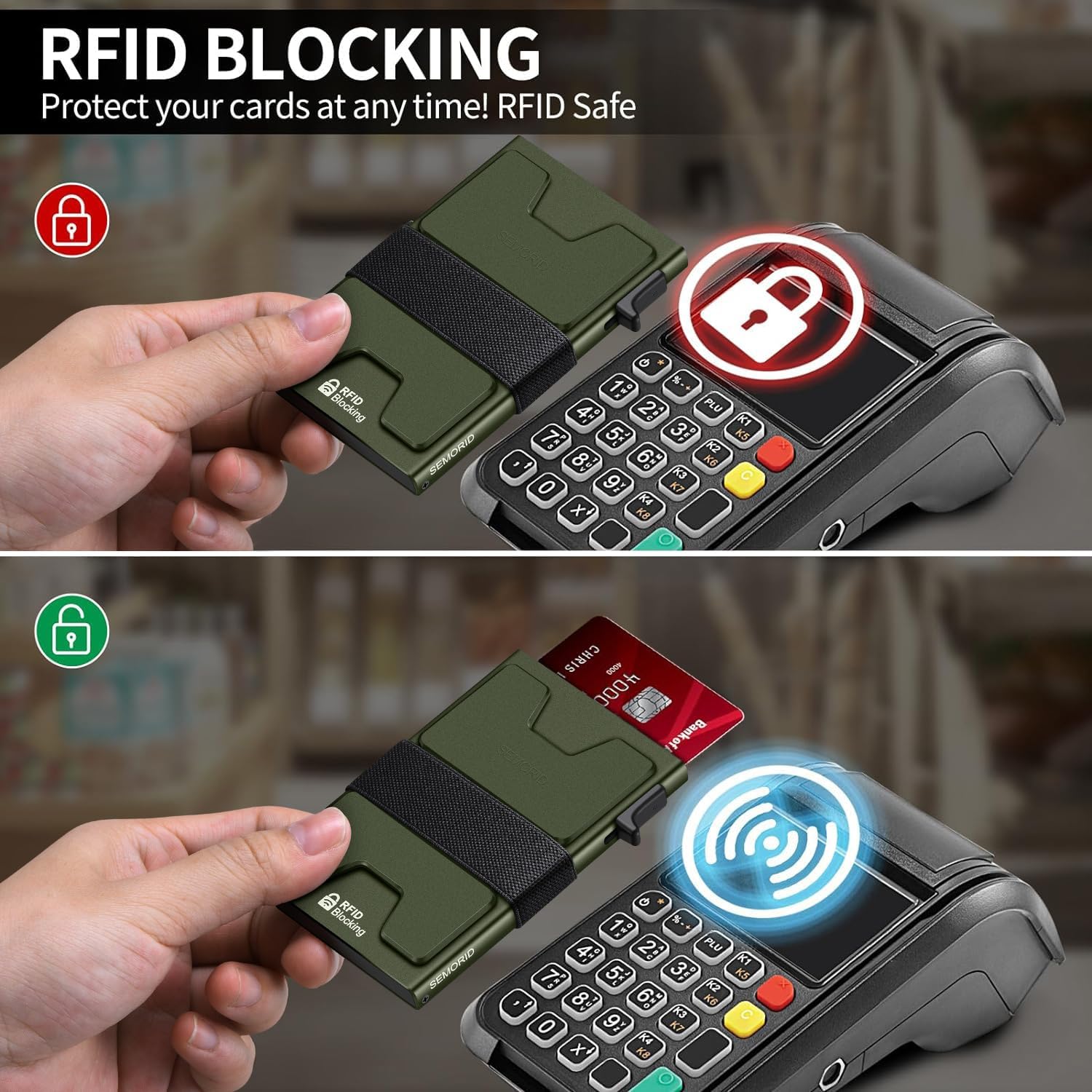 - 💳 ULTRA THIN PROFILE (SLIM WALLET FOR MEN): The minimalist tactical wallet is very thin and can be carried comfortably in a pocket. The aluminum cardholder size is 3.9*2.5*0.5in,weight only 2.6oz. And expandable backplate designed for additional storage. Ditch the bulk, less is more.