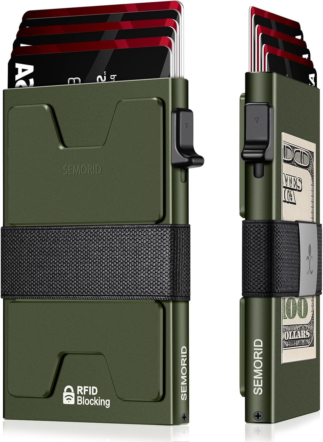 Slim Aluminum Card Holder Wallet for Men, Durable Expandable Backplate, RFID Blocking Minimalist Metal Pop Up Wallet, Holds 12+ Cards Plus Cash
