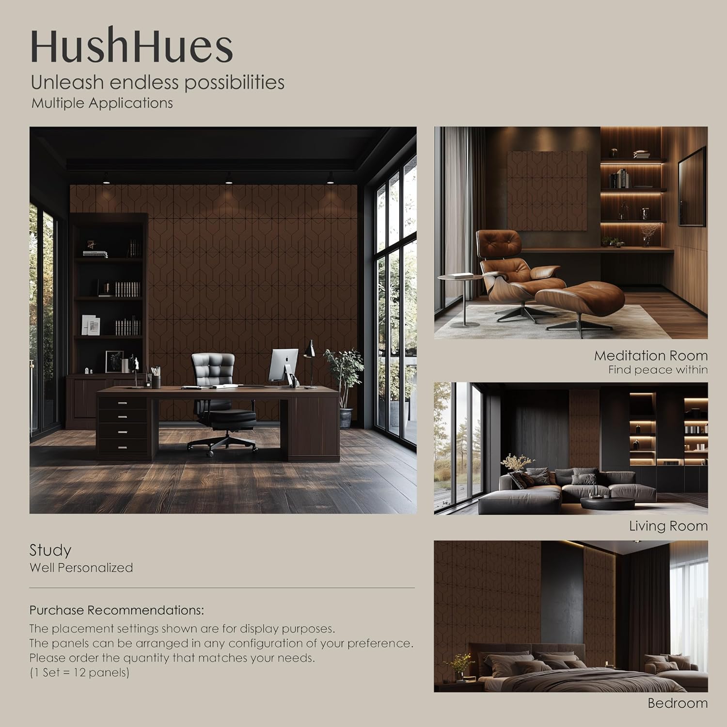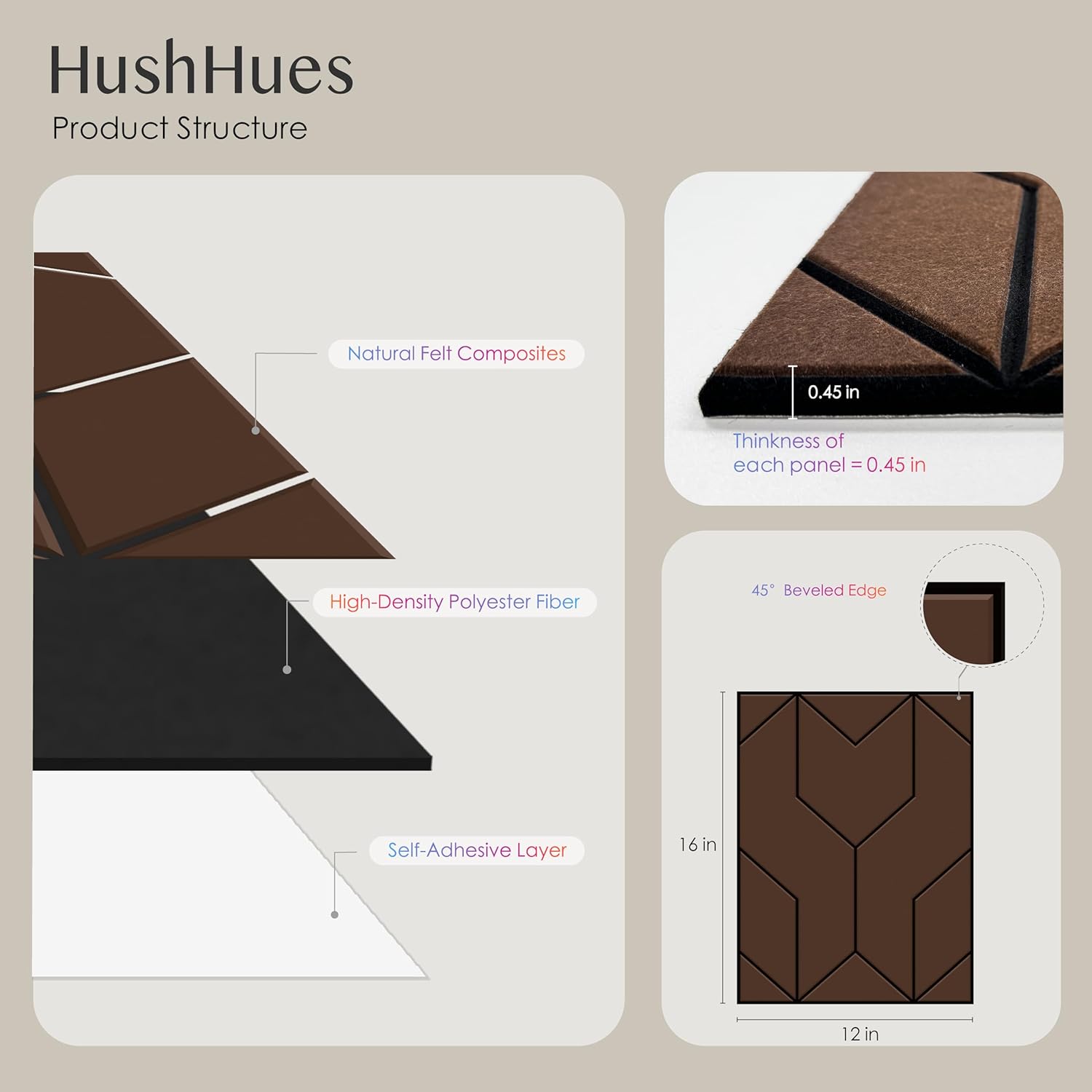 12-Pack Acoustic Panels, 16"x12"x0.4" Large Acoustic Wall Panels, Self-Adhesive Sound Absorbing Panels for Recording Studios & Offices, Brown+Black Decorative Acoustic Panels