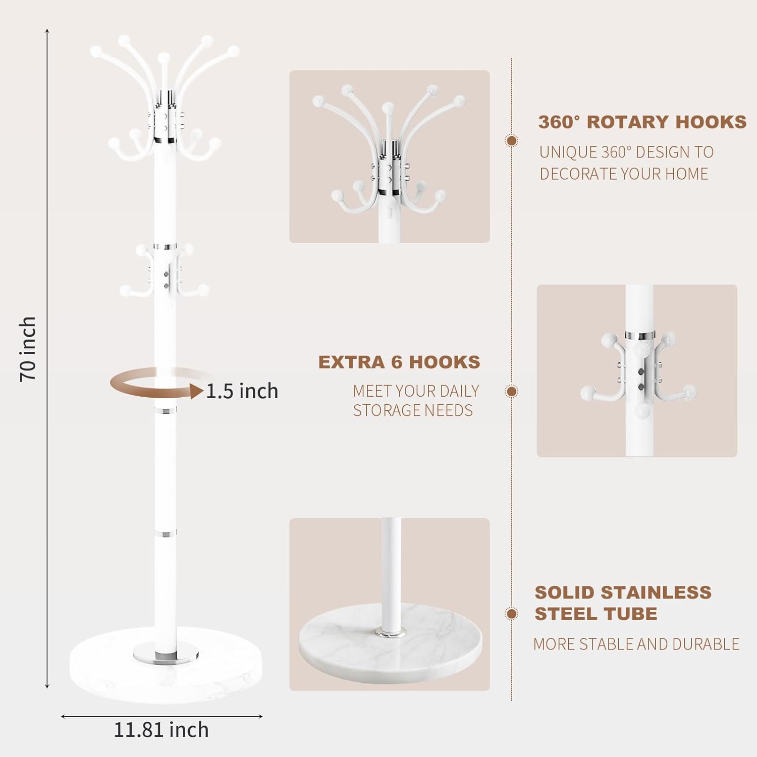 - UNIQUE 360°ROTARY DESIGN HOOKS: Waavryee white coat rack has unique 360° rotary hook, you can easily access your clothes. The coat rack stand is not only simple, fashionable and space-saving. It can be an exquisite decoration for your home