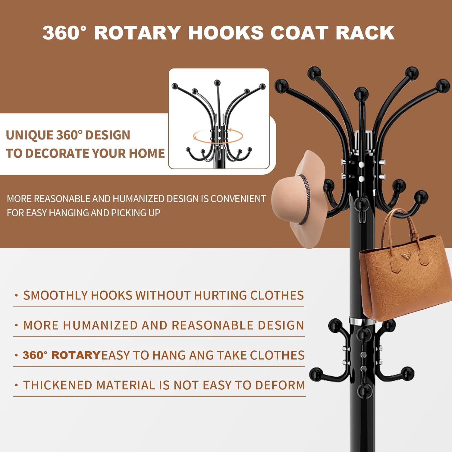 - UNIQUE 360°ROTARY DESIGN HOOKS: Waavryee coat rack has unique 360° rotary hook, you can easily access your clothes. The coat rack stand is not only simple, fashionable and space-saving. It can be an exquisite decoration for your home