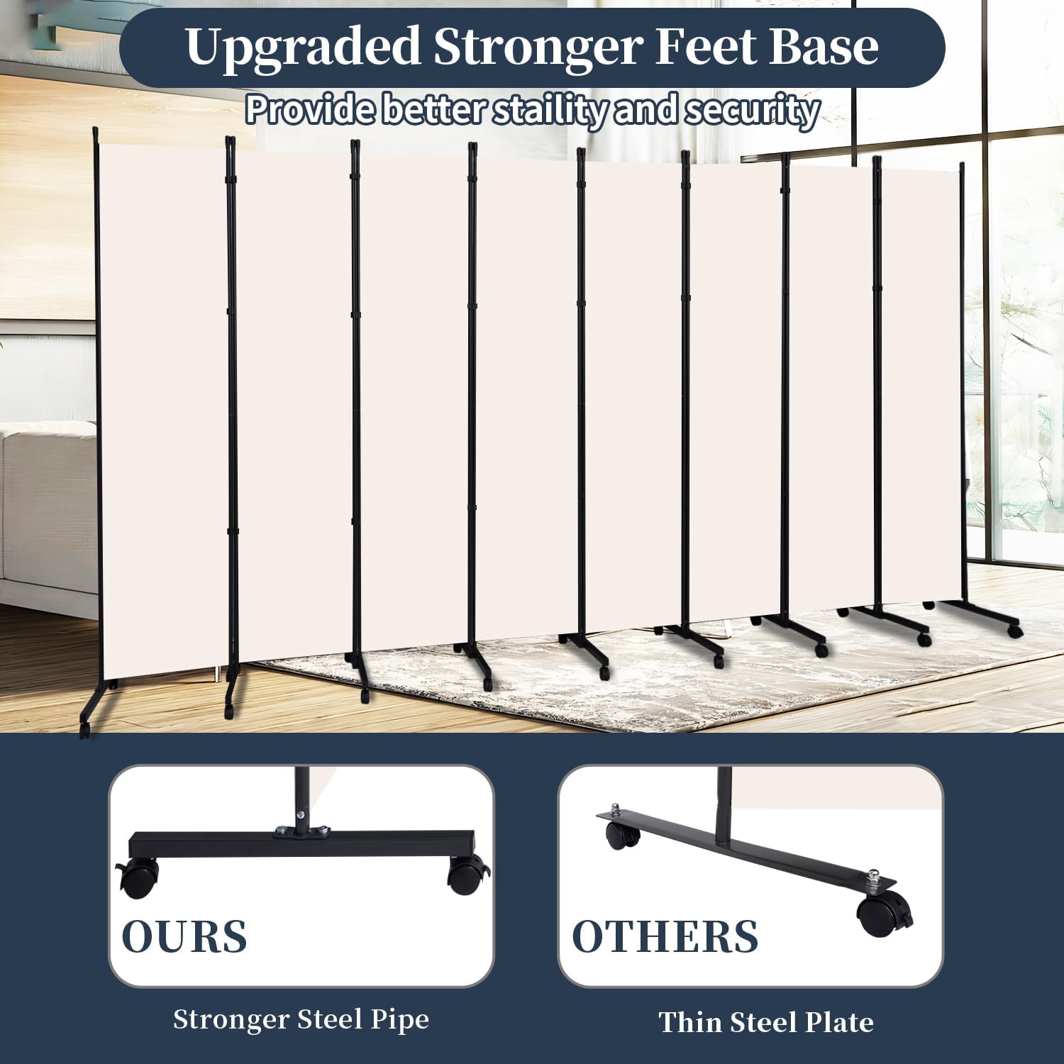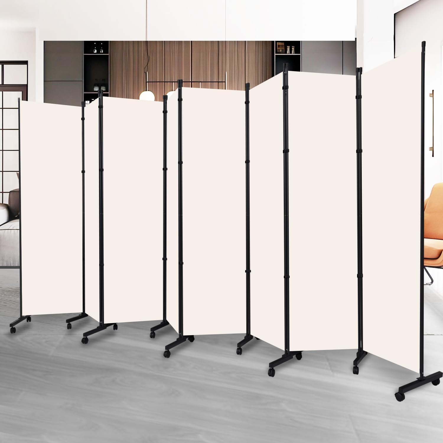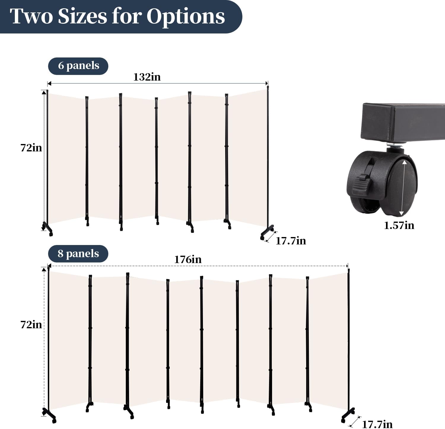 Room Divider Folding Privacy Screens with Lockable Wheels, 176'' Fabric Partition Room Dividers Freestanding Room Divider Panel for Room Separation, Wall Divider for Home Office Bedroom Studio Decor