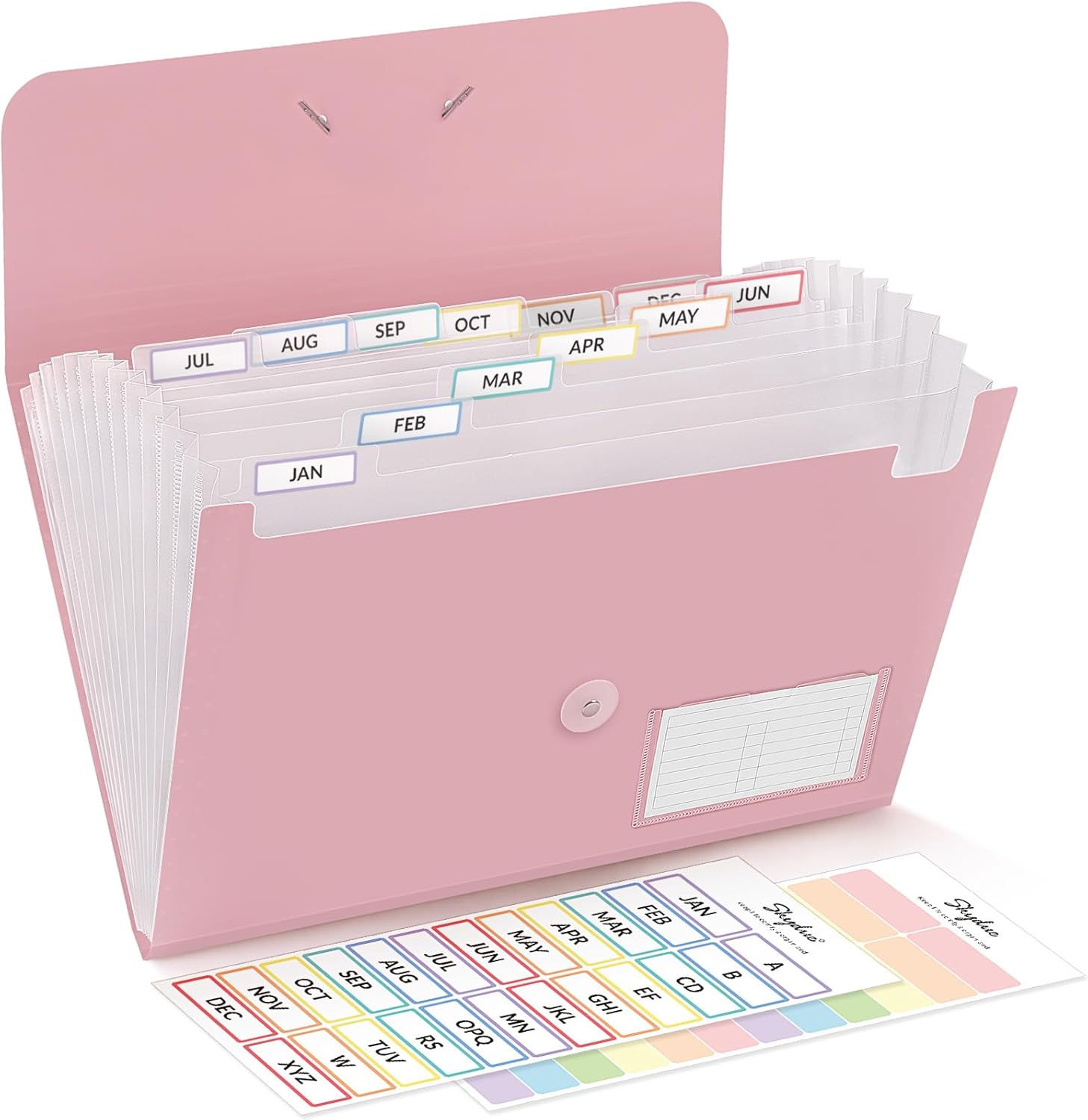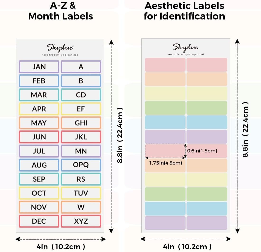 - Creative Design: The interior showcases a vibrant rainbow color scheme across 12 compartments, complemented by a set of pre-printed A-Z and monthly labels, along with a set of colorful blank tags for easy categorization and quick identification. The aesthetically pleasing diamond-textured shell has a comfortable touch, seamlessly blending comfort with fashion
