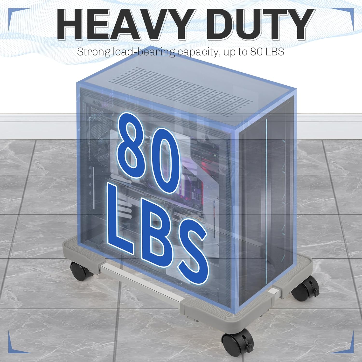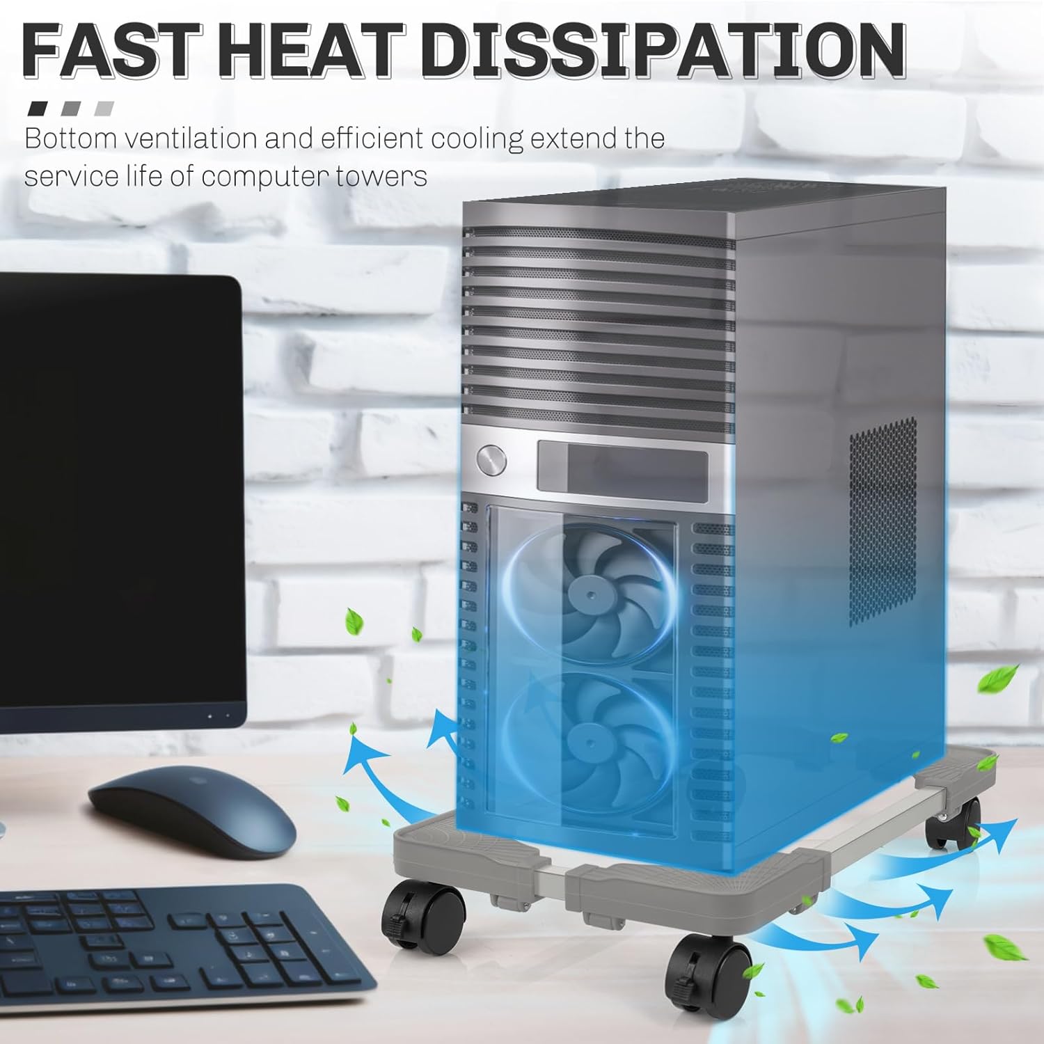 - Ventilation and Heat Dissipation: The pc stand for floor increases the distance between the computer tower and the ground. the open bottom design can ensure air circulation, ensure ventilation and heat dissipation of the computer tower, and increase the use time of the computer tower.