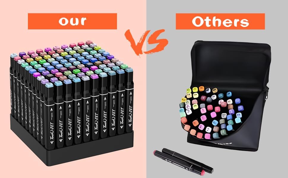 - 【DISTINCTIVE DOUBLE HEAD CONFIGURATIONS】: The square barrel design of the markers pen ensures a stable grip and no slipping during usage. It features a dual nibs design, consisting of a thick chisel and a fine tip, providing versatility. The fine tip alcohol markers are ideal for detailed marking in calligraphy, while the wide chisel tip is suitable for large area application. With two distinct nibs and a matching design, seamless color blending is achievable, enhancing the coloring efficiency.