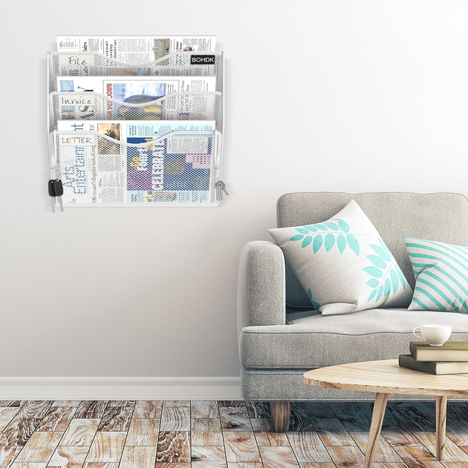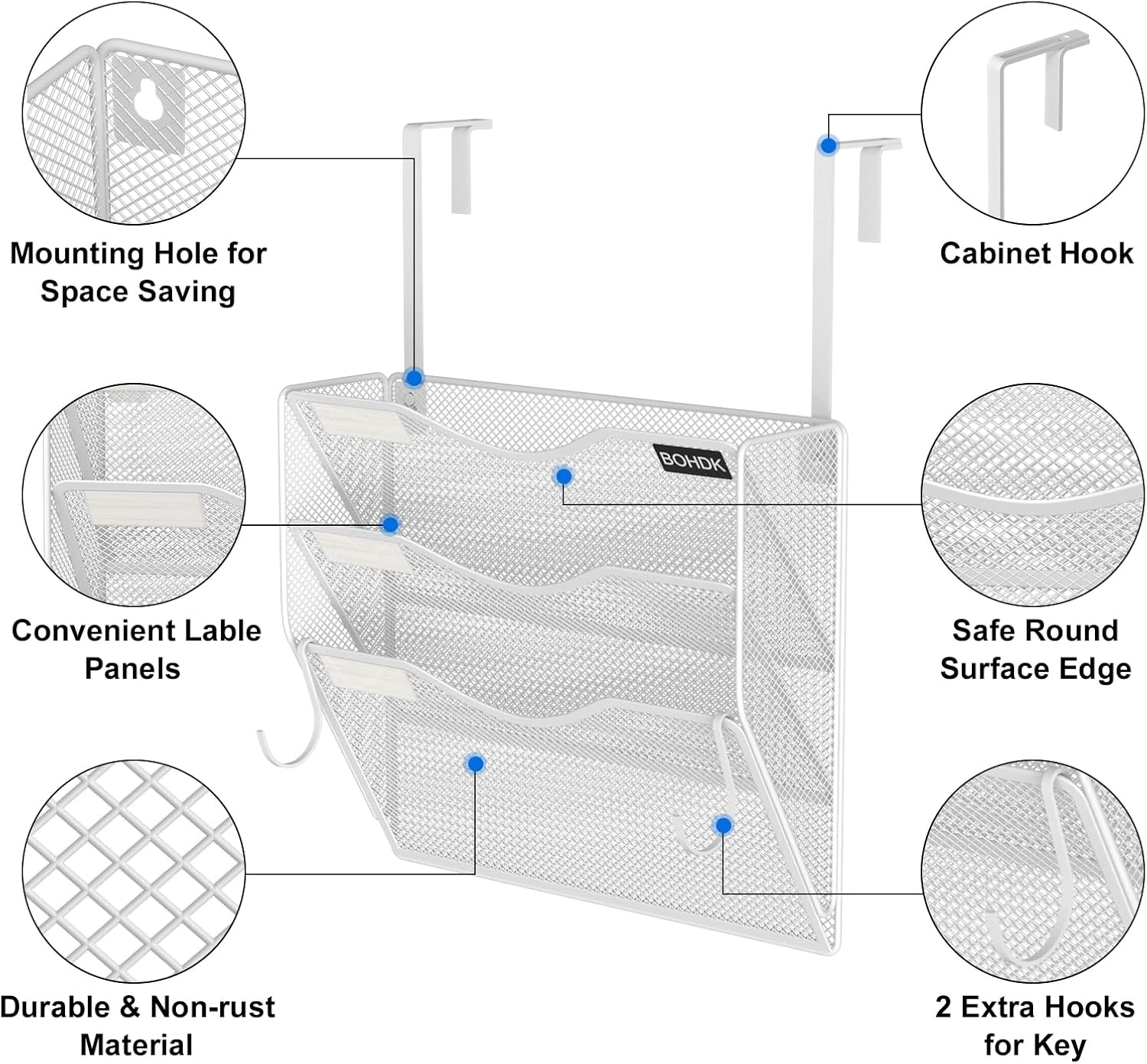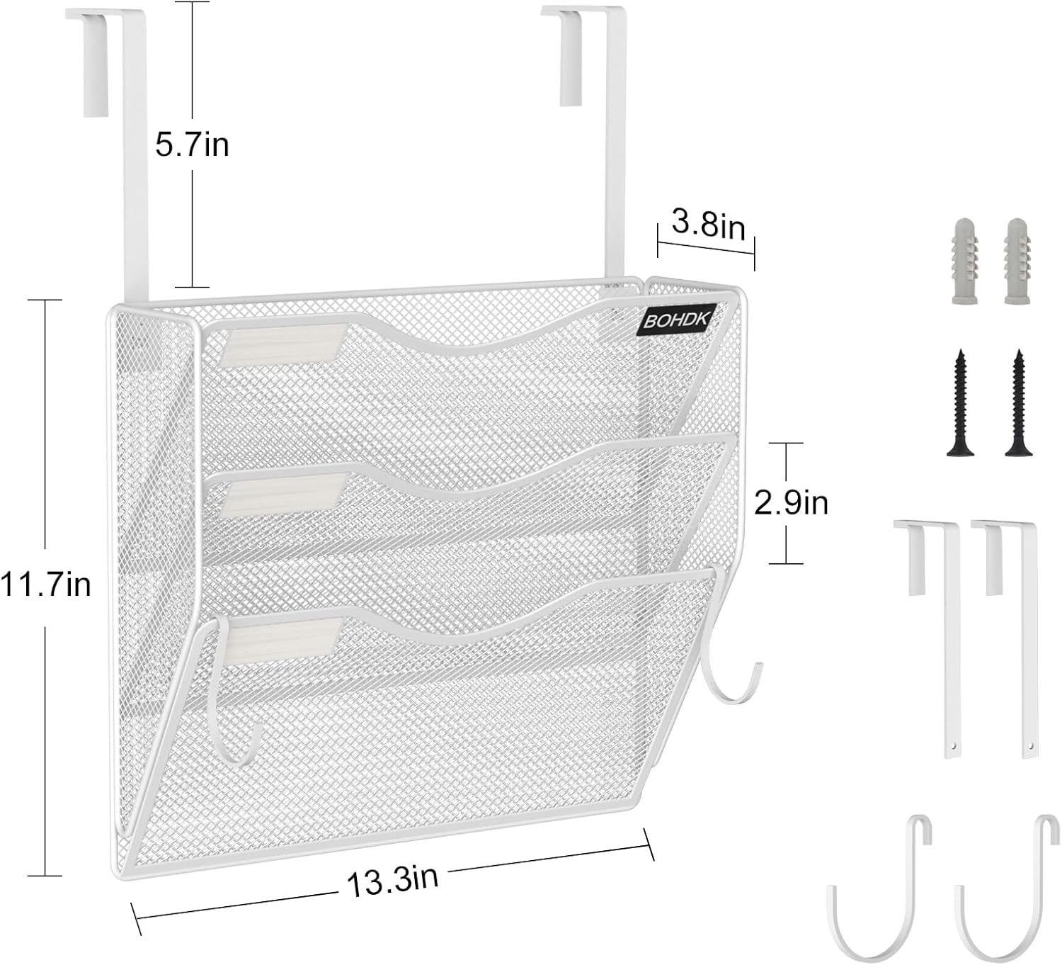 - 【Detail Dimensions】13.3"Lx3.8"Wx11.7"H. Perfect size for home and office. 100% satisfaction for you, you have 12-month guarantee for BOHDK wall file organizers for any reason.