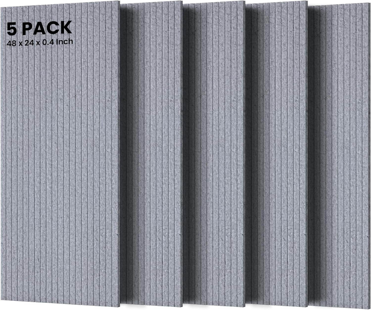 5 Pack Acoustic Panels, 48 x 24x 0.4 Inch Sound Proof Panels for Walls, Premium Wall Sound Absorbing Panels, Decorative Sound Dampening Panels for Media Room, Office and Studio,Silver Gray