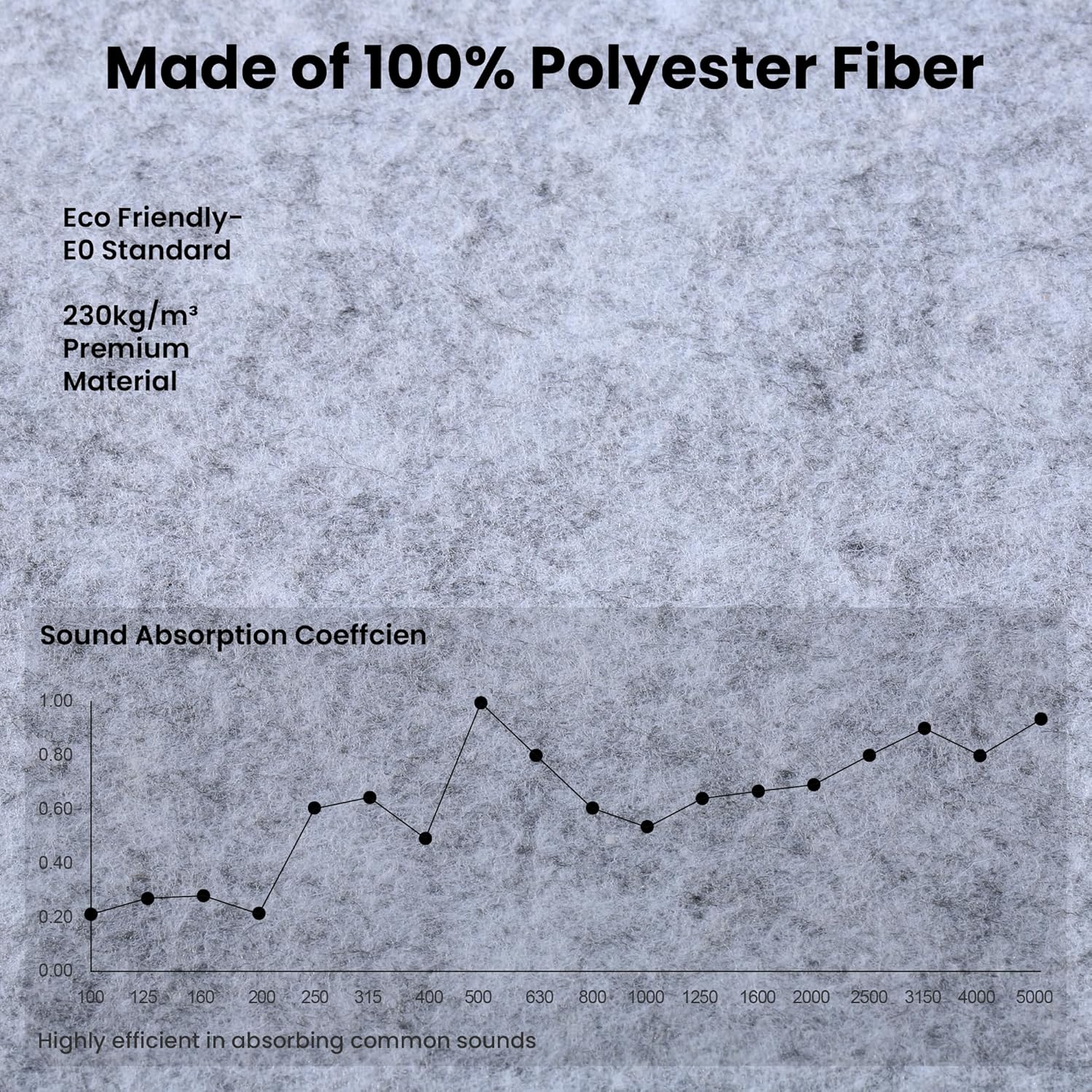 - 100% Polyester Fiber - The wall soundproofing panels is carefully made of 100% polyester fiber. Polyester fiber large acoustic panels have many advantages, such as excellent sound absorption, effective resistance to moisture and mildew, easy to cut,good stability, and has a high cost-effective.