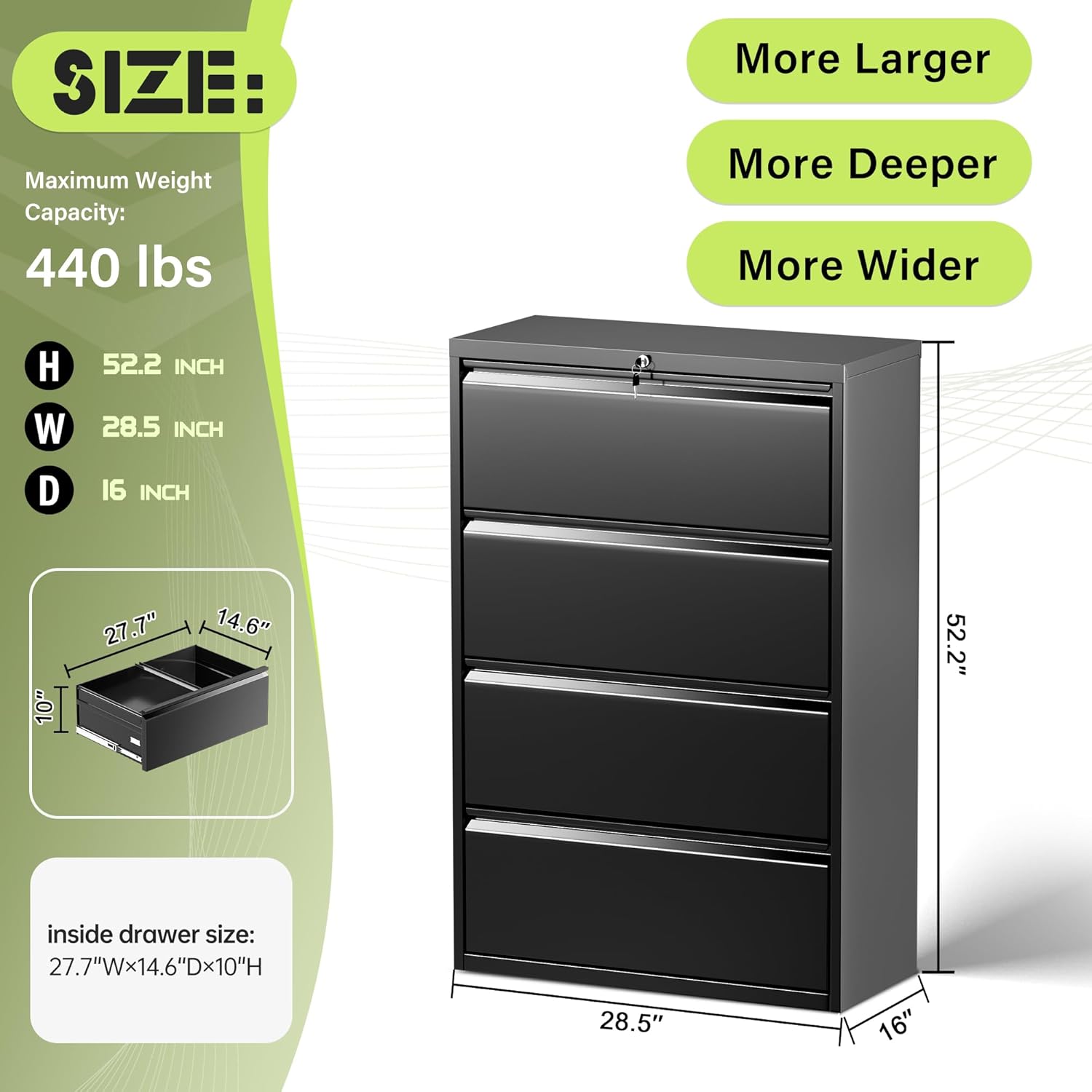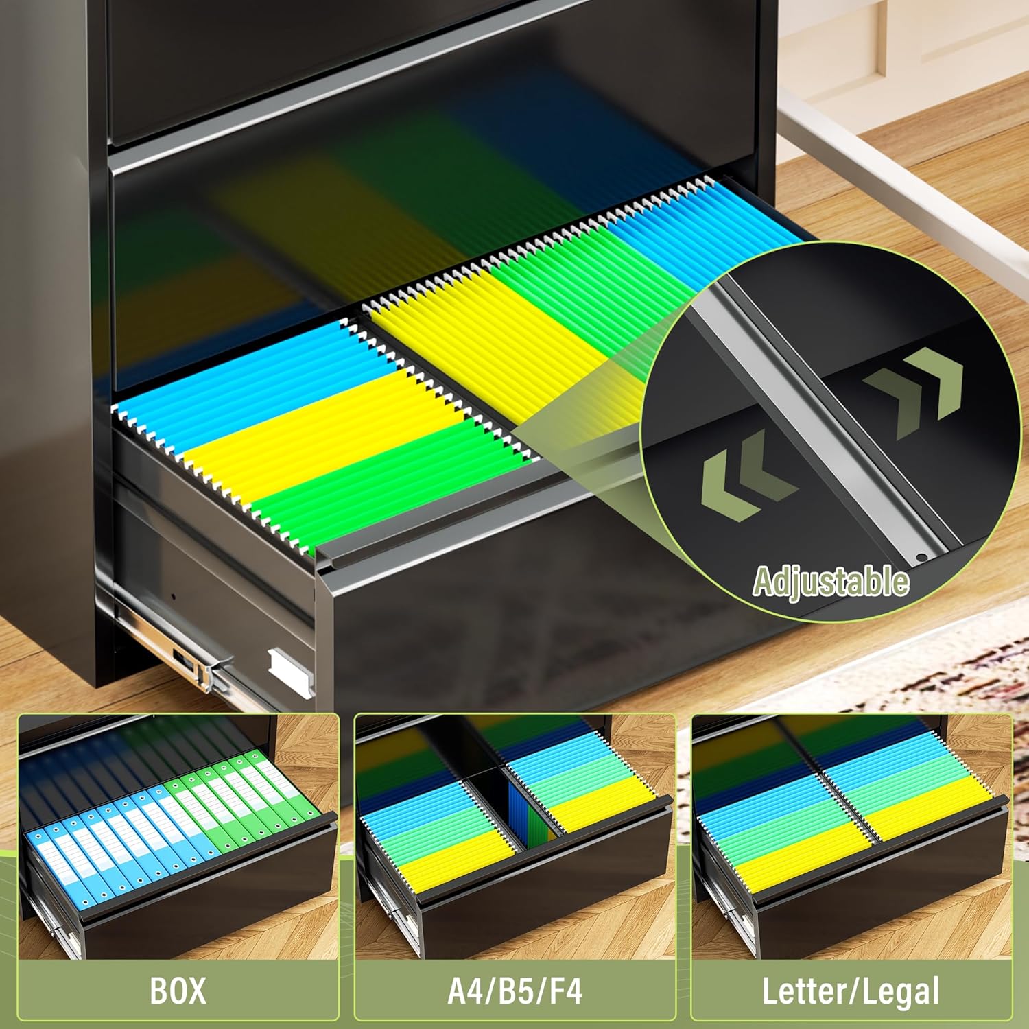 - 【Large capacity storage】 Our file cabinets are designed horizontally to provide ample space for papers and office supplies, with each drawer holding almost 300 letters or A4 sized folders. It is the perfect tool for organizing files, documents, and other office supplies