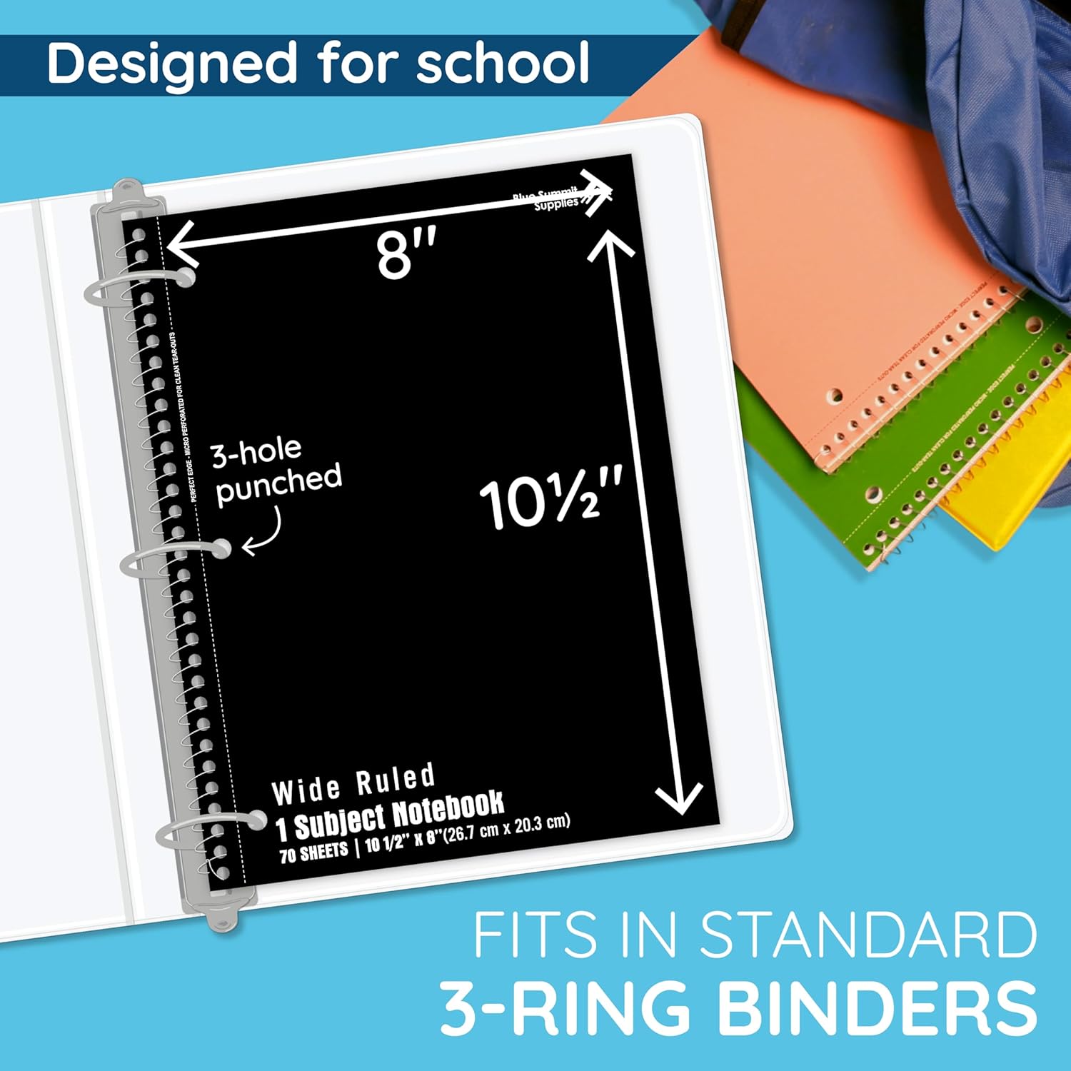 - Standard Size with Binder-Friendly Design – Each 10.5” x 8” 1 subject notebook is 3 hole punched, making it easy to insert into binders or folders for school, home, or office use.