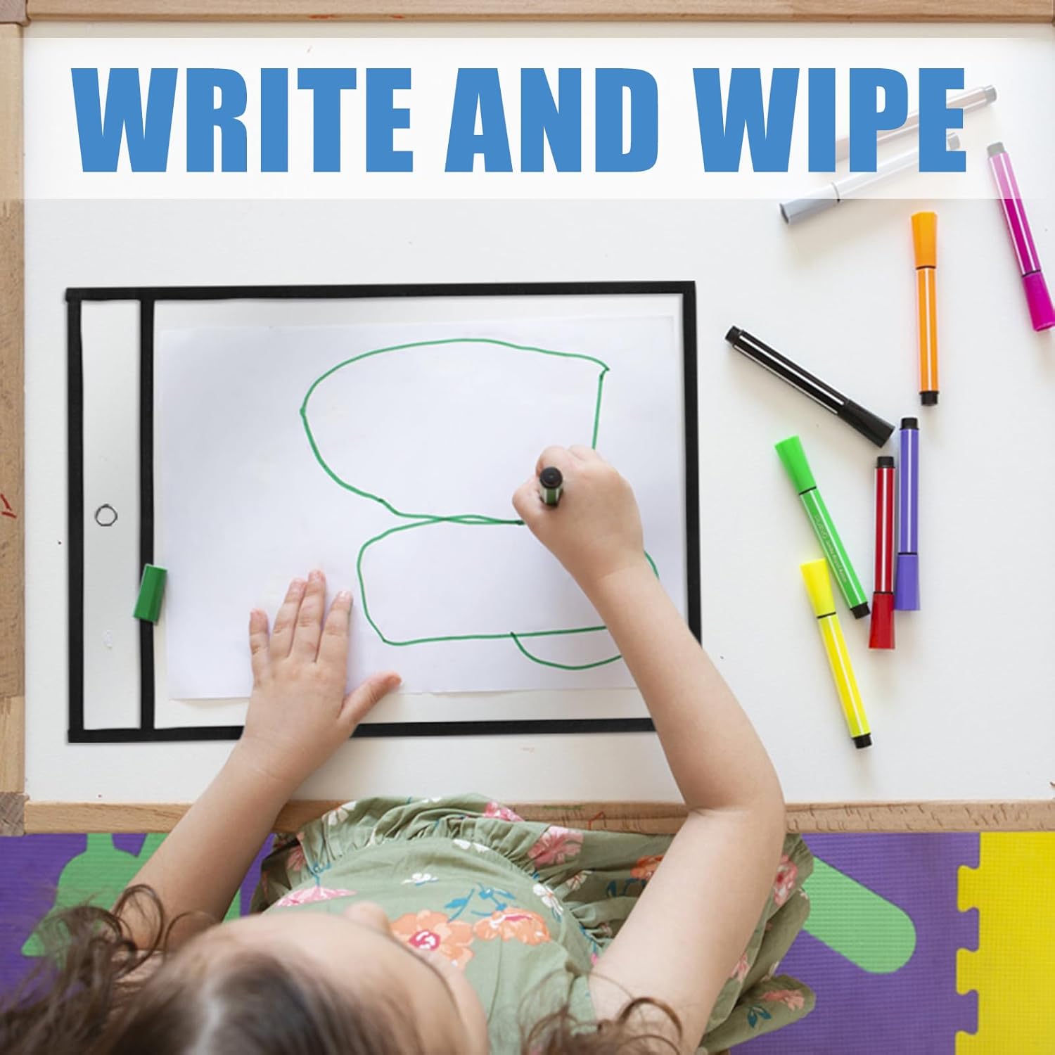 - [Write and Wipe Dry Erase Pockets] It is easy to clean the writing on the clear waterproof surface. Help to save ink, paper copies, money, and print time
