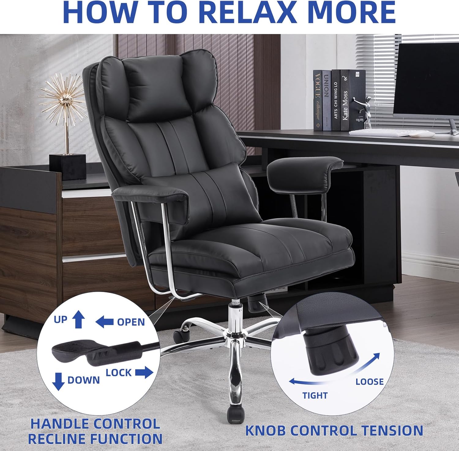 - 𝑪𝒐𝒎𝒇𝒐𝒓𝒕𝒂𝒃𝒍𝒆: Big and tall office chair features scratch-resistant PU leather. Task chair is easy to maintain. Big high back office chair filled with double-layer polyester foam and sponge seat and backrest provide unmatched comfort for all-day sitting.