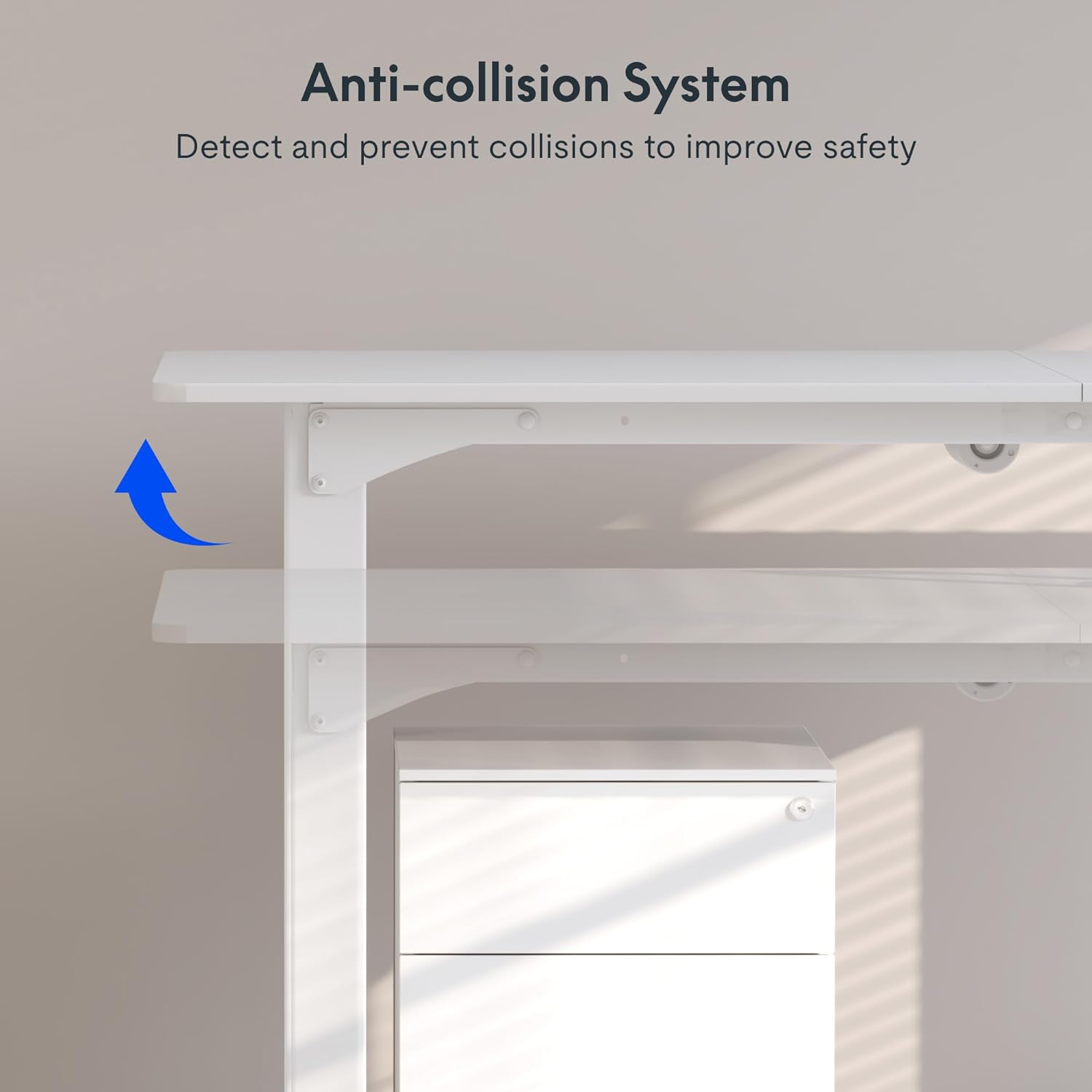 FLEXISPOT 4 Legs Standing Desk 63 x 28 Inch Electric Adjustable Height Desk with Splice Board Home Office Sit Stand Up Desk, White Top + White Frame